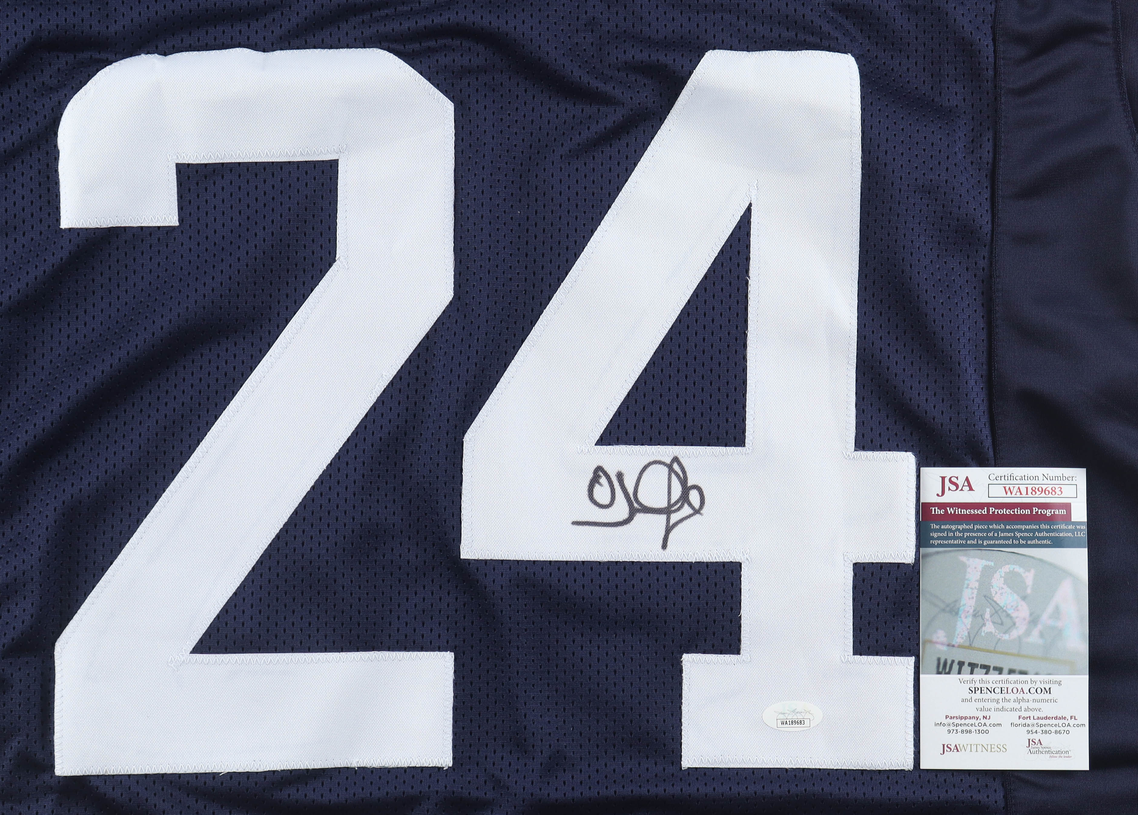 Custom jersey. Everything is sewn on, size XL. Hand-signed by O. J. McDuffie. Please note, glue is visible through the reverse number.