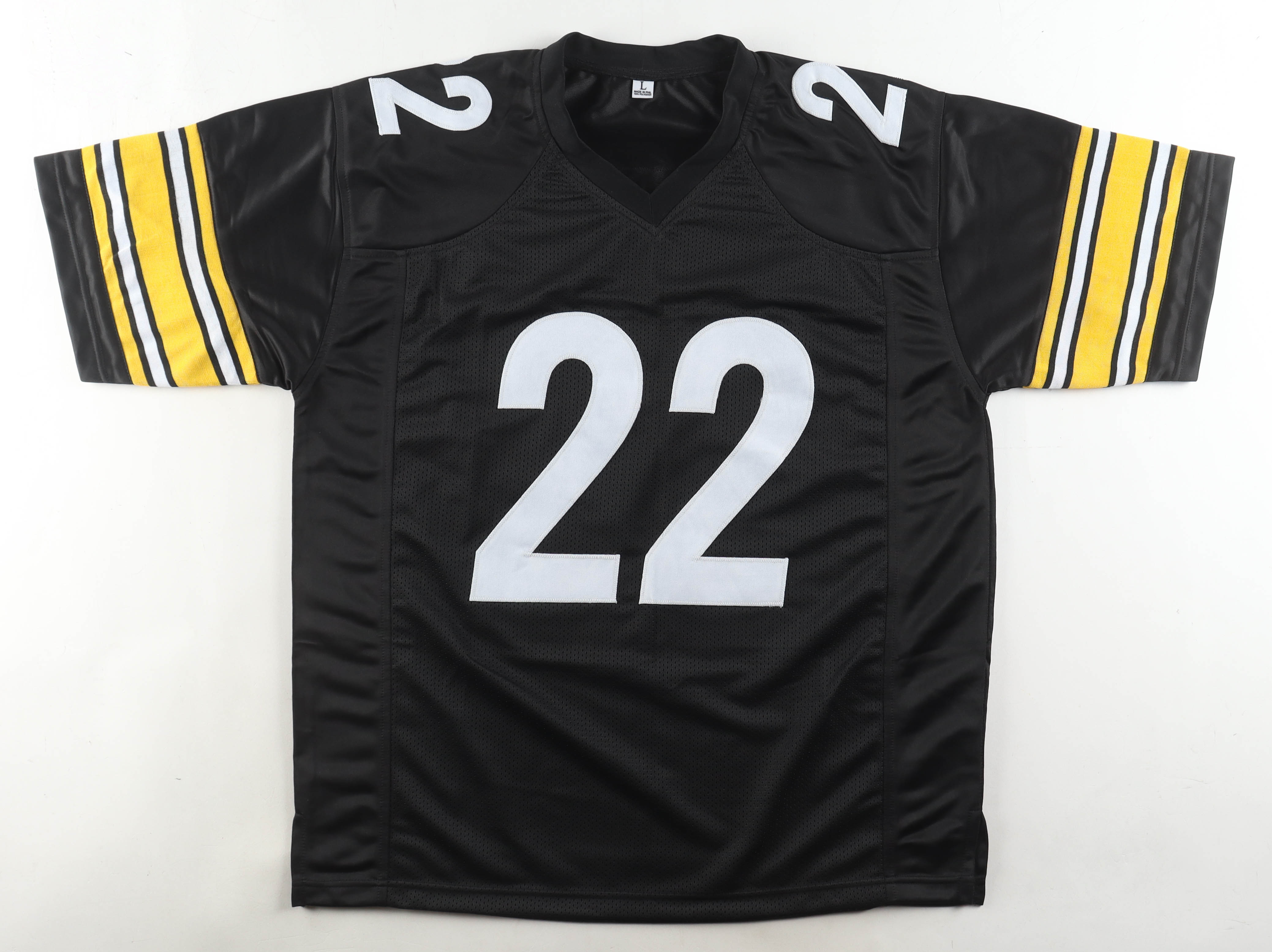 Custom jersey with everything sewn on, size XL. Has been hand-signed by Duce Staley. Please note, glue is visible through the reverse number.