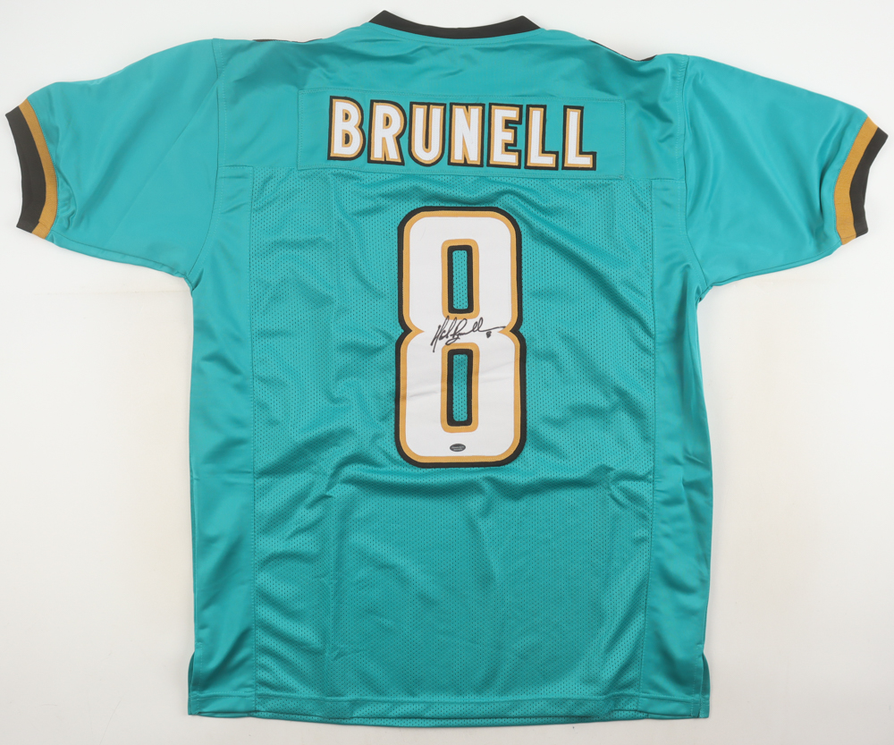 Custom jersey with everything sewn on, size XL. Hand-signed by Mark Brunell.
