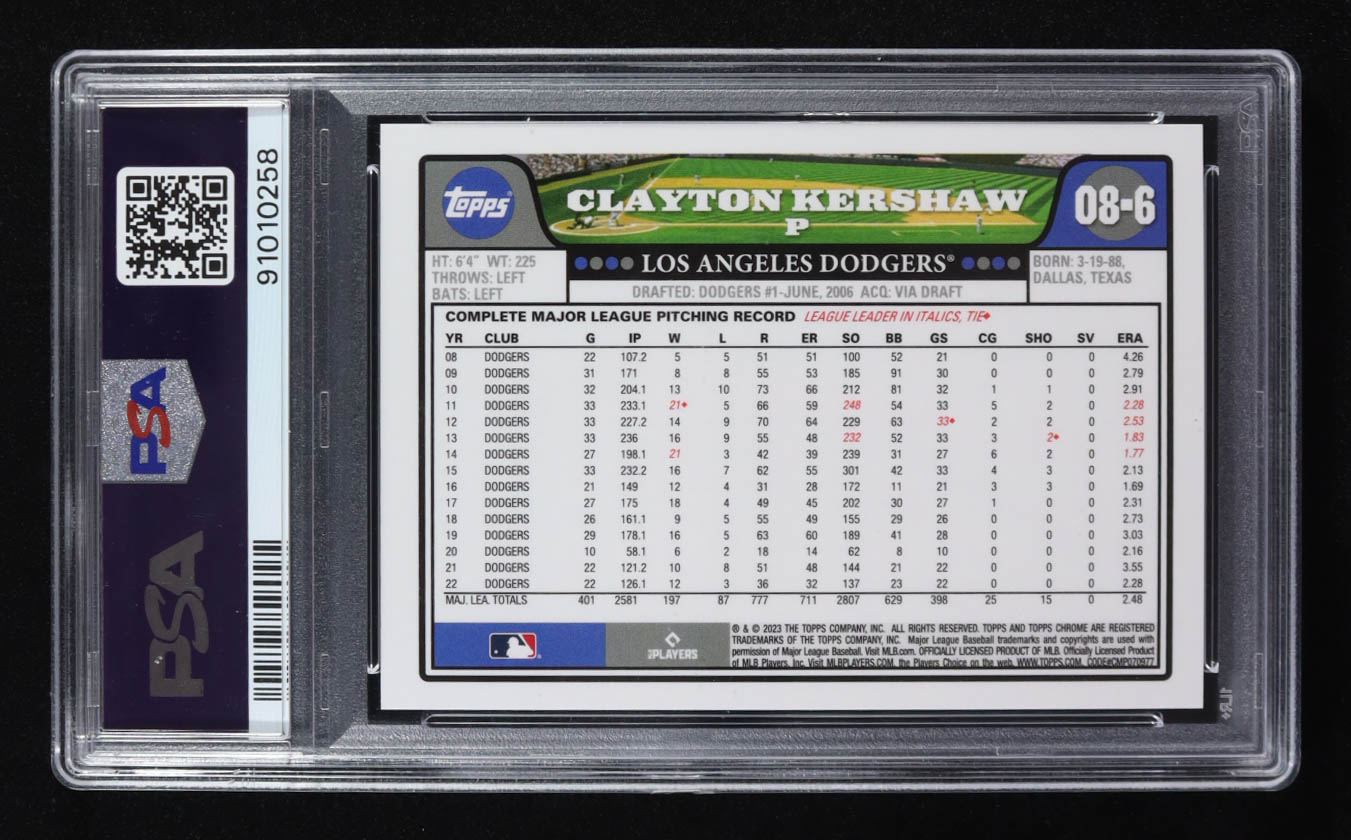 Clayton Kershaw 2023 Topps Chrome Lids 2008 Design-Gold #08-6 #04/50 (PSA 9)