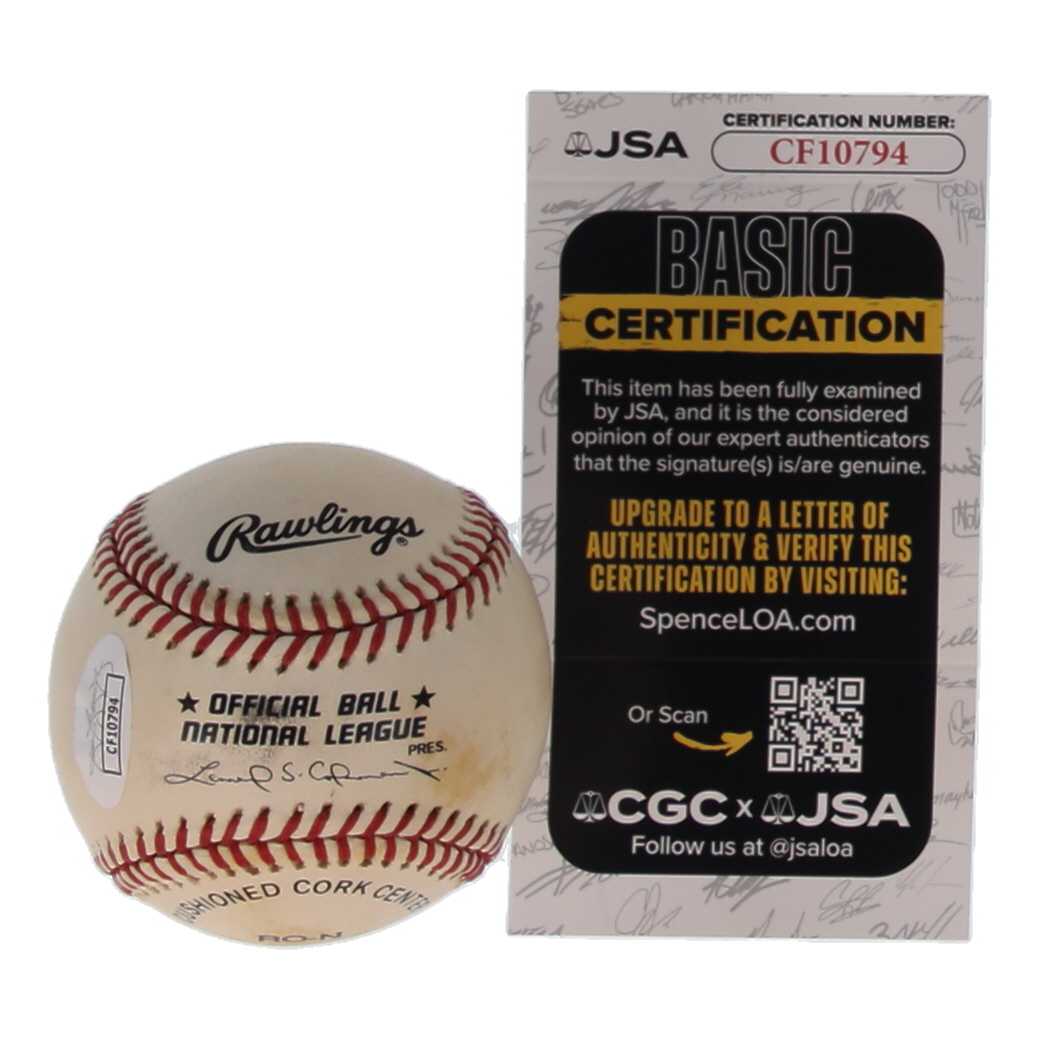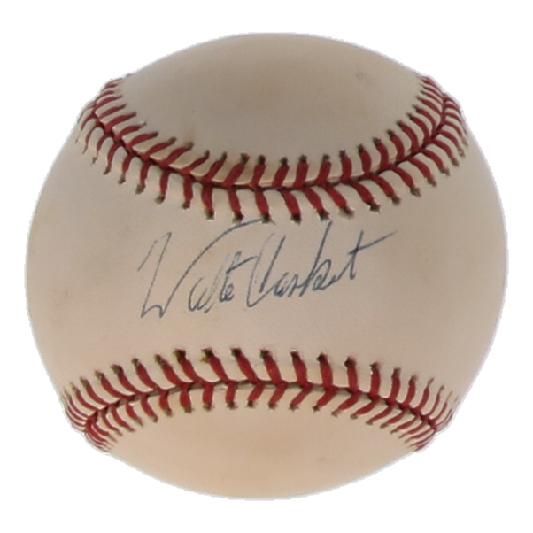 Rawlings Official National League baseball. Hand-signed by Walter Cronkite (D. 2009). Please note, the ball is naturally toned and stained throughout. See photos for more detail regarding the condition of the item.