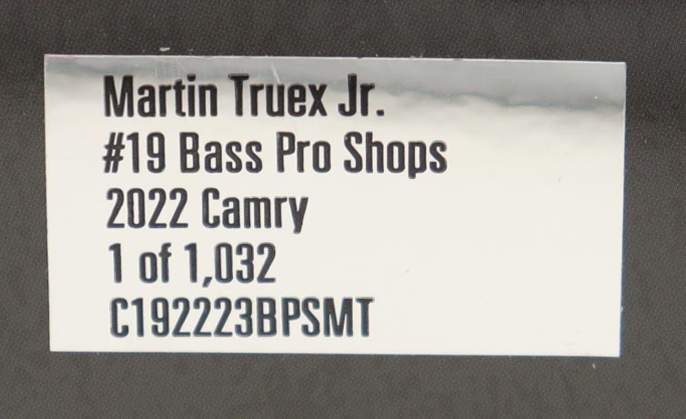 The #19 Bass Pro Shops 2022 Camry is a limited edition to just 1032 produced and includes the original packaging.