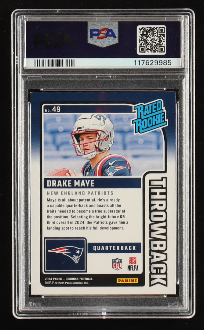 Drake Maye 2024 Donruss Rated Rookies Throwback RR #49 (PSA 9)