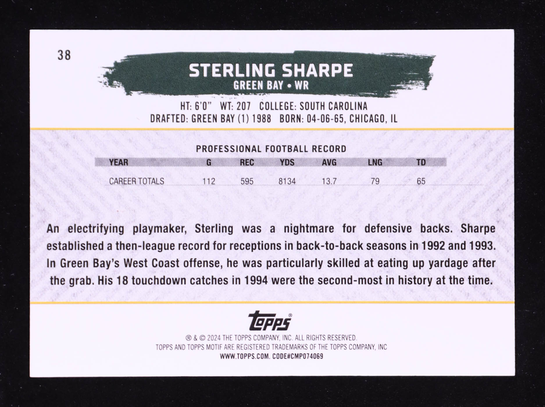 Sterling Sharpe 2023 Topps Motif Winsor Green #38 #8/8
