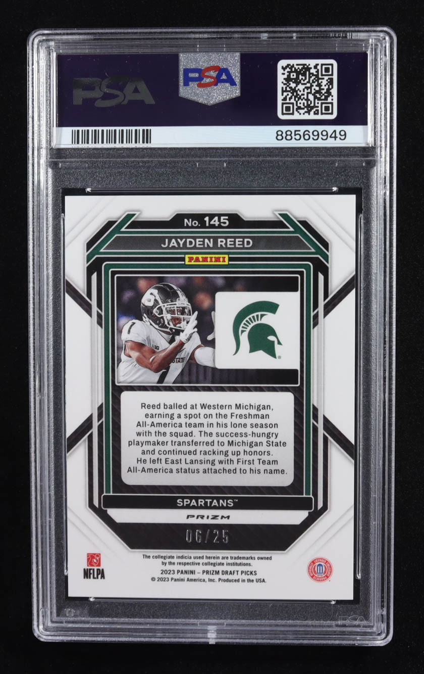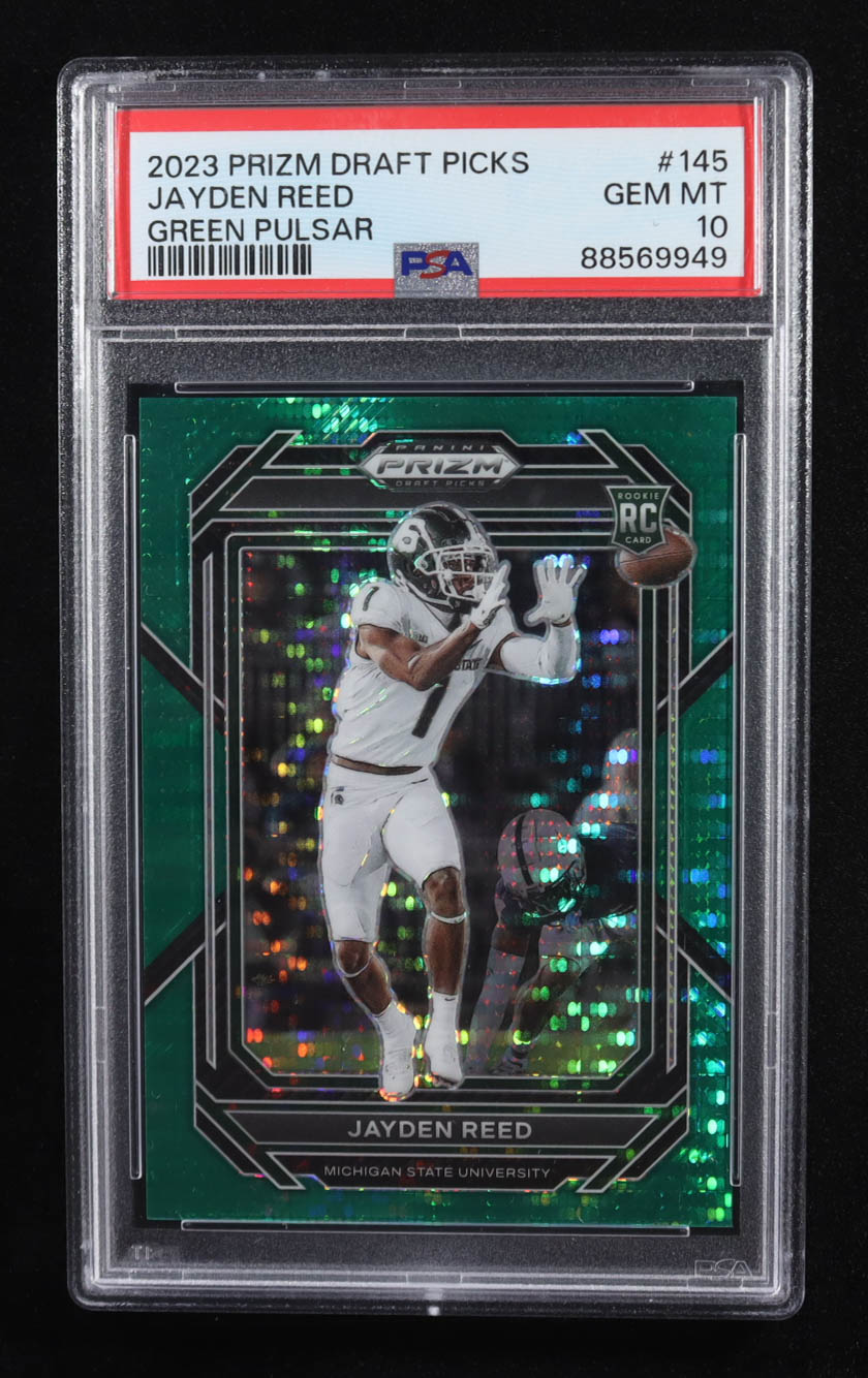 Jayden Reed 2023 Prizm Draft Picks Green Pulsar #145 RC #06/25 (PSA 10)