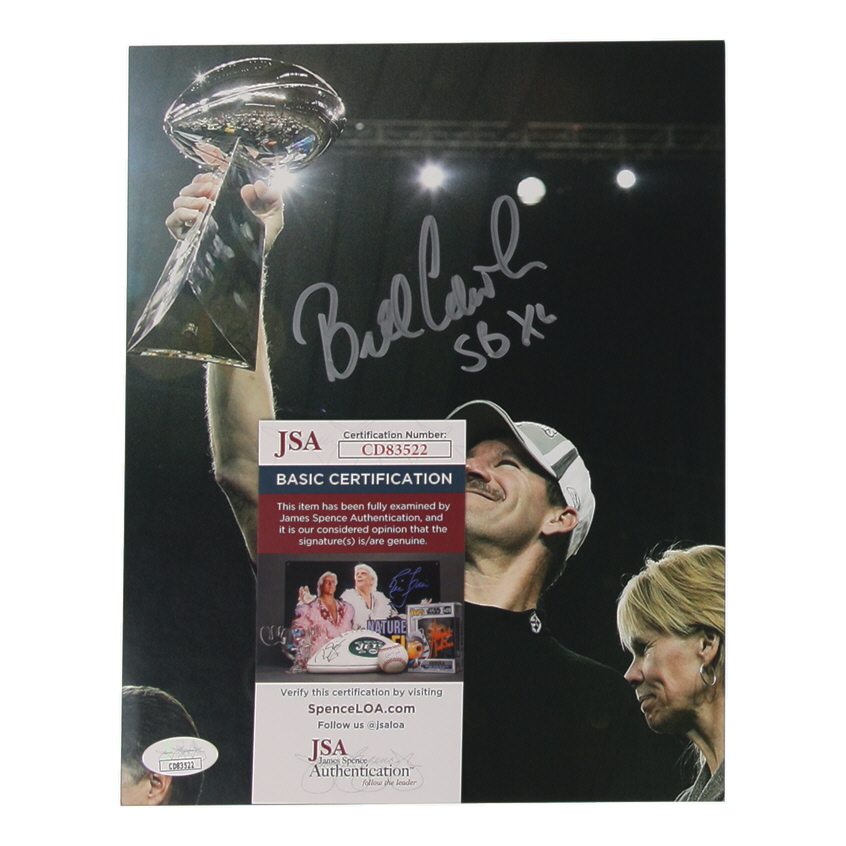 Photo measures 8" x 10" in size and has been hand-signed and inscribed by Bill Cowher (Pittsburgh Steelers, HOF).