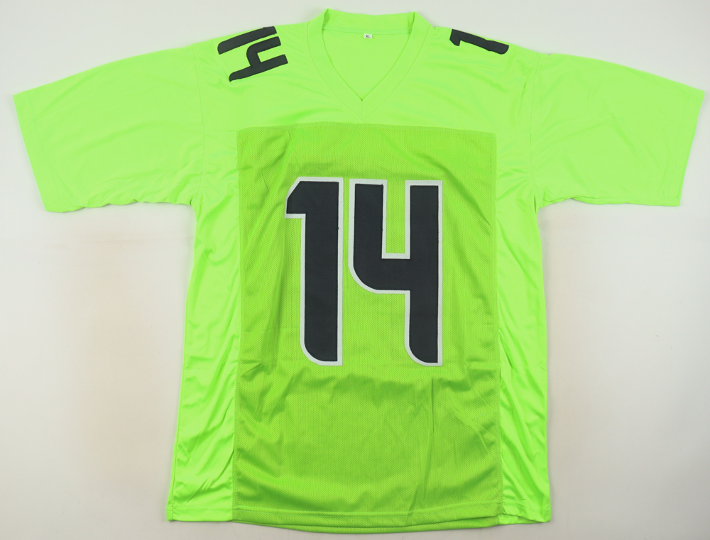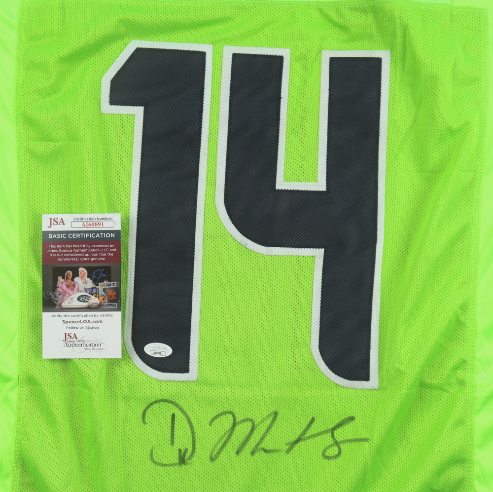 Custom jersey with everything sewn on, size XL. Hand-signed by DK Metcalf.