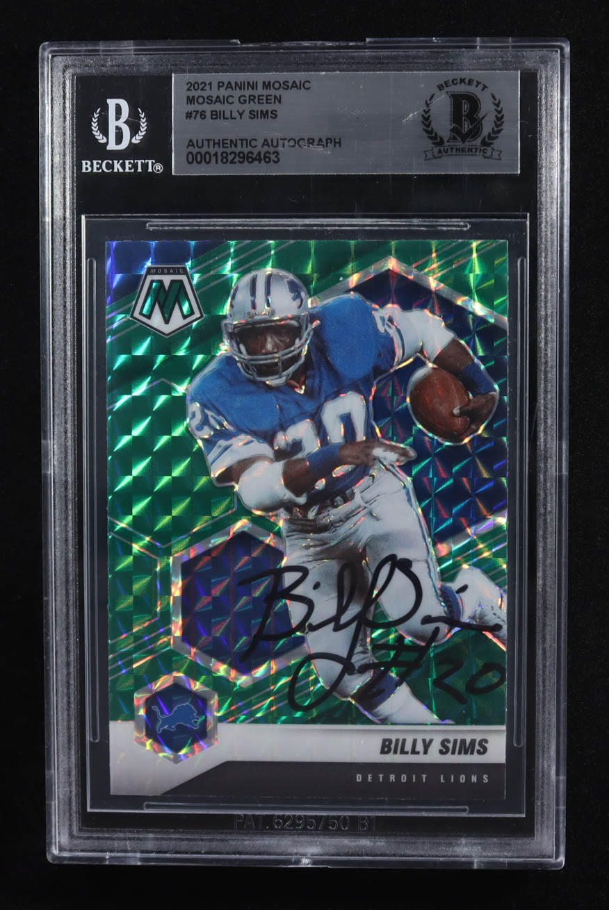 Billy Sims Signed 2021 Inscribed "#20" Panini Mosaic Green Prizm Auto #76 (BGS | Autograph Grade BGS Authentic)