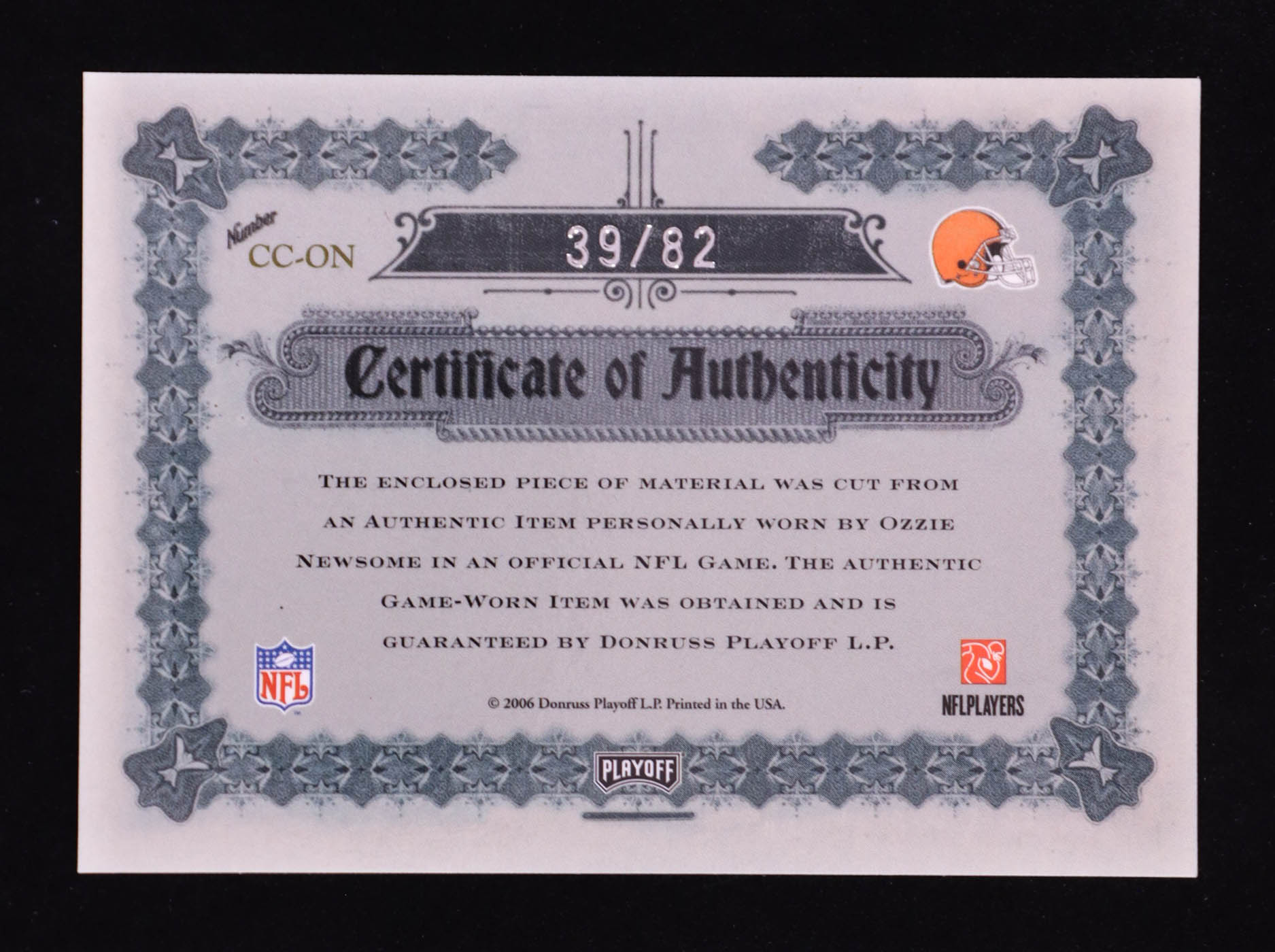 Ozzie Newsome 2006 Playoff National Treasures Canton Classics Materials Signature Jersey Number #ON #39/82