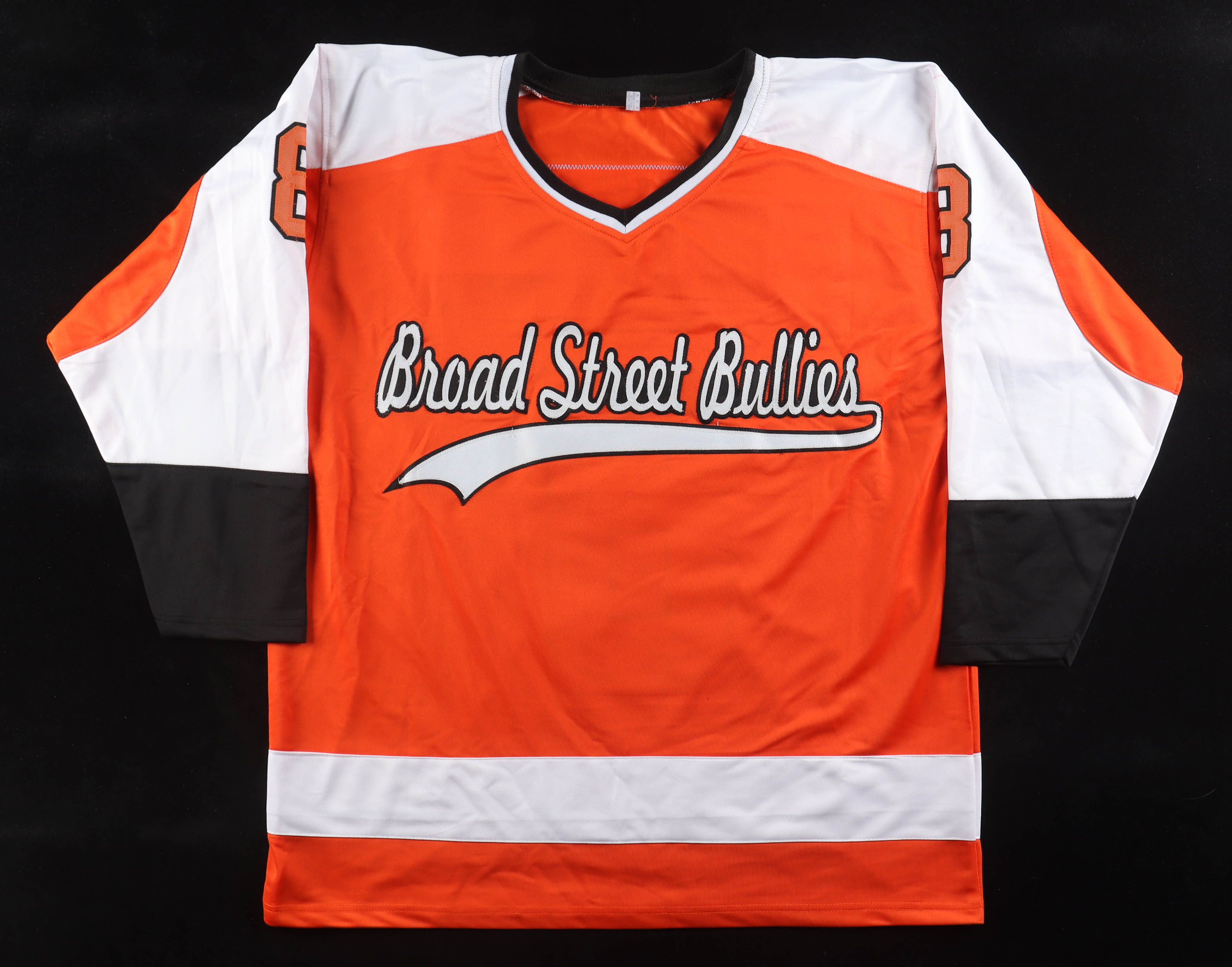 Custom jersey. Everything is sewn on, size L. Hand-signed by Dave Schultz. Please note, the signature has bled.