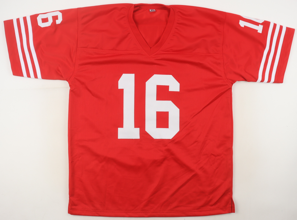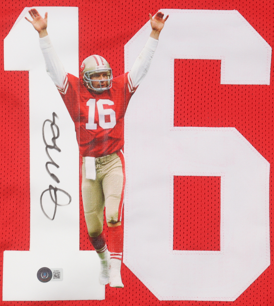 Custom jersey with everything sewn on, size XL. Hand-signed by Joe Montana (HOF). please note, glue is visible through the reverse number.