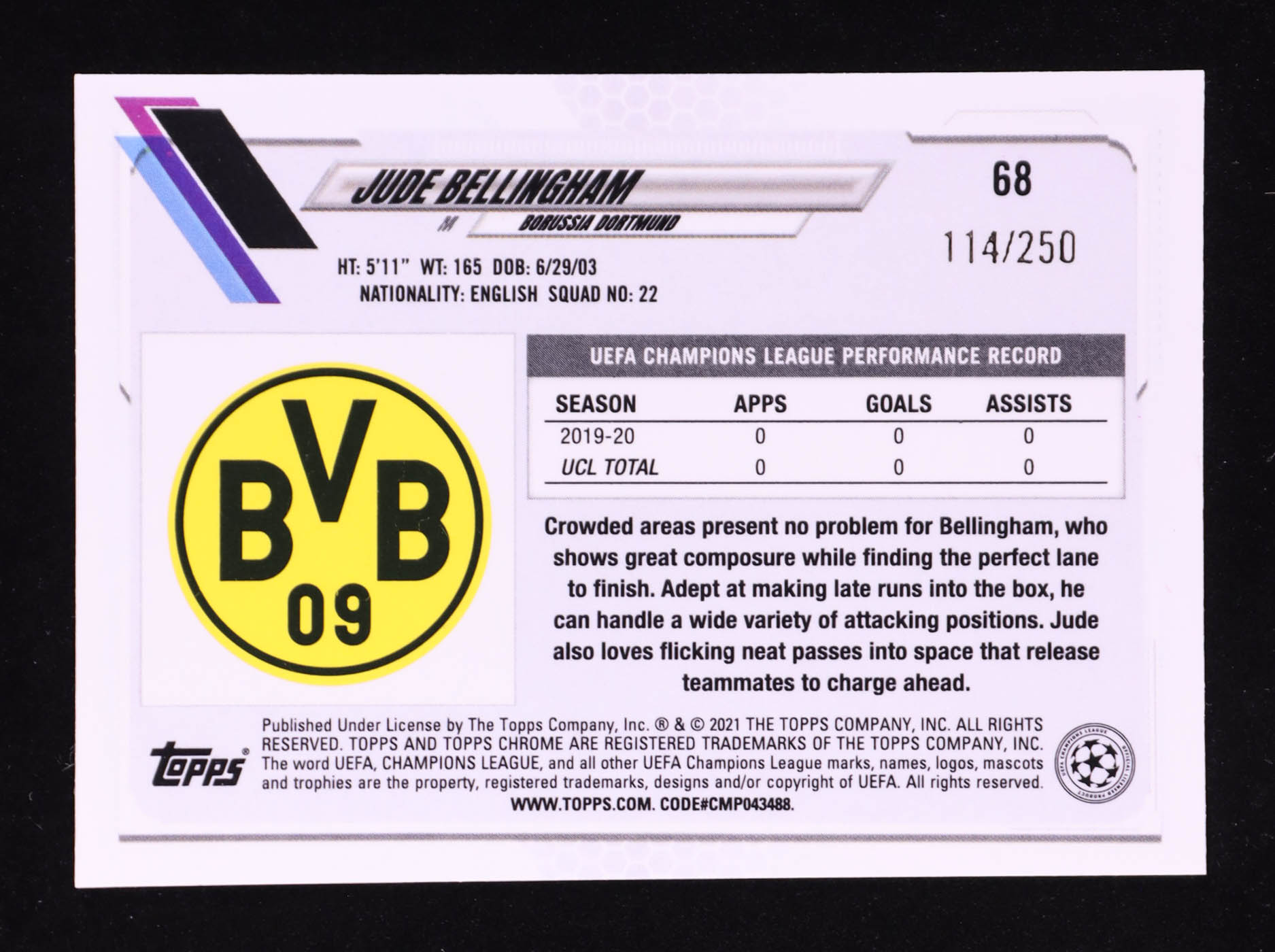 Jude Bellingham 2020-21 Topps Chrome UEFA Champions League Purple Diamond Refractors #68 #114/250 RC