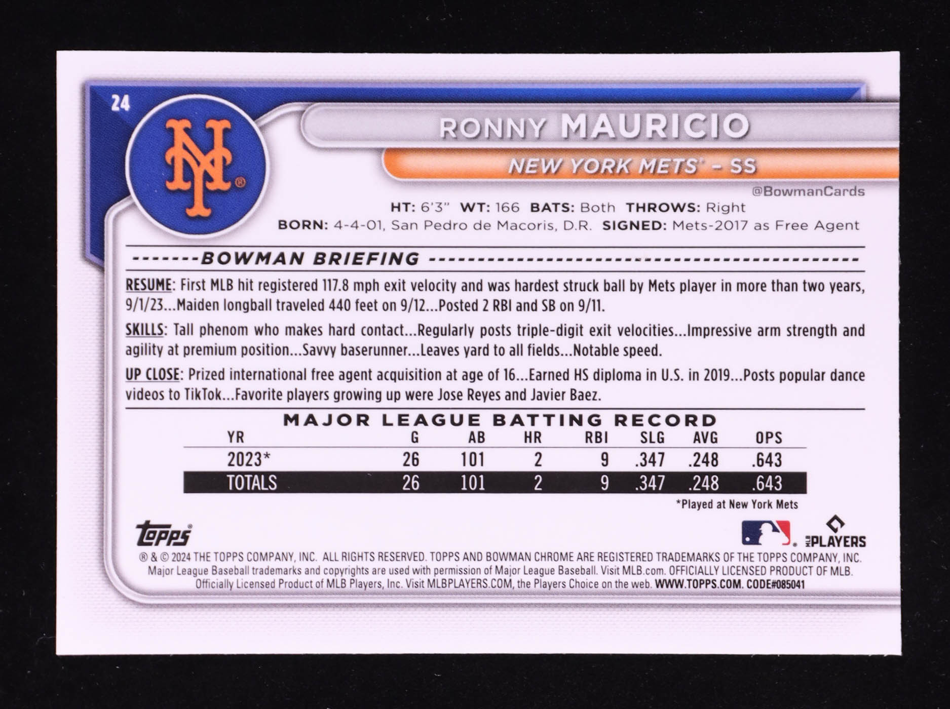 Ronny Mauricio 2024 Bowman Chrome Gold Refractors #24 #40/50 RC