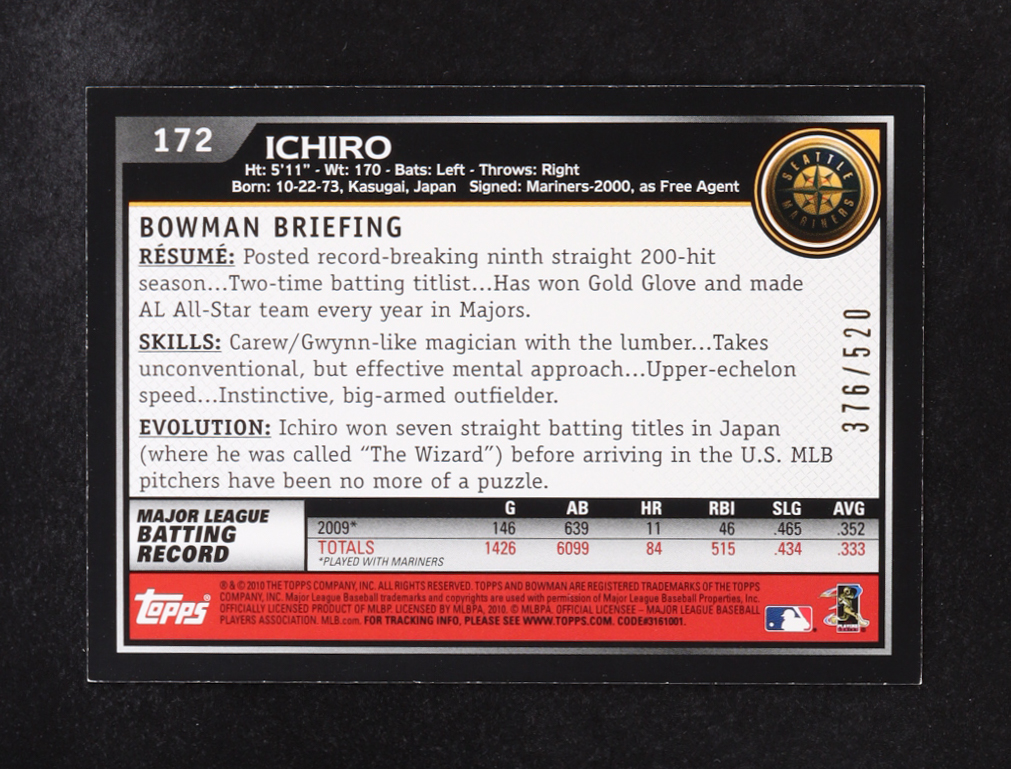 Ichiro Suzuki 2010 Topps Bowman Blue #172 #376/520