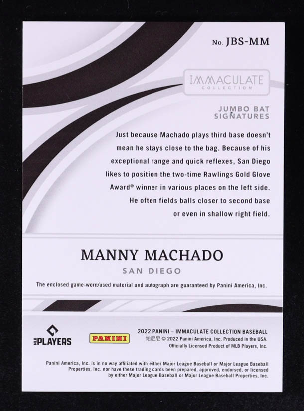 Manny Machado 2022 Immaculate Collection Jumbo Bat Signatures Gold #19 #09/10