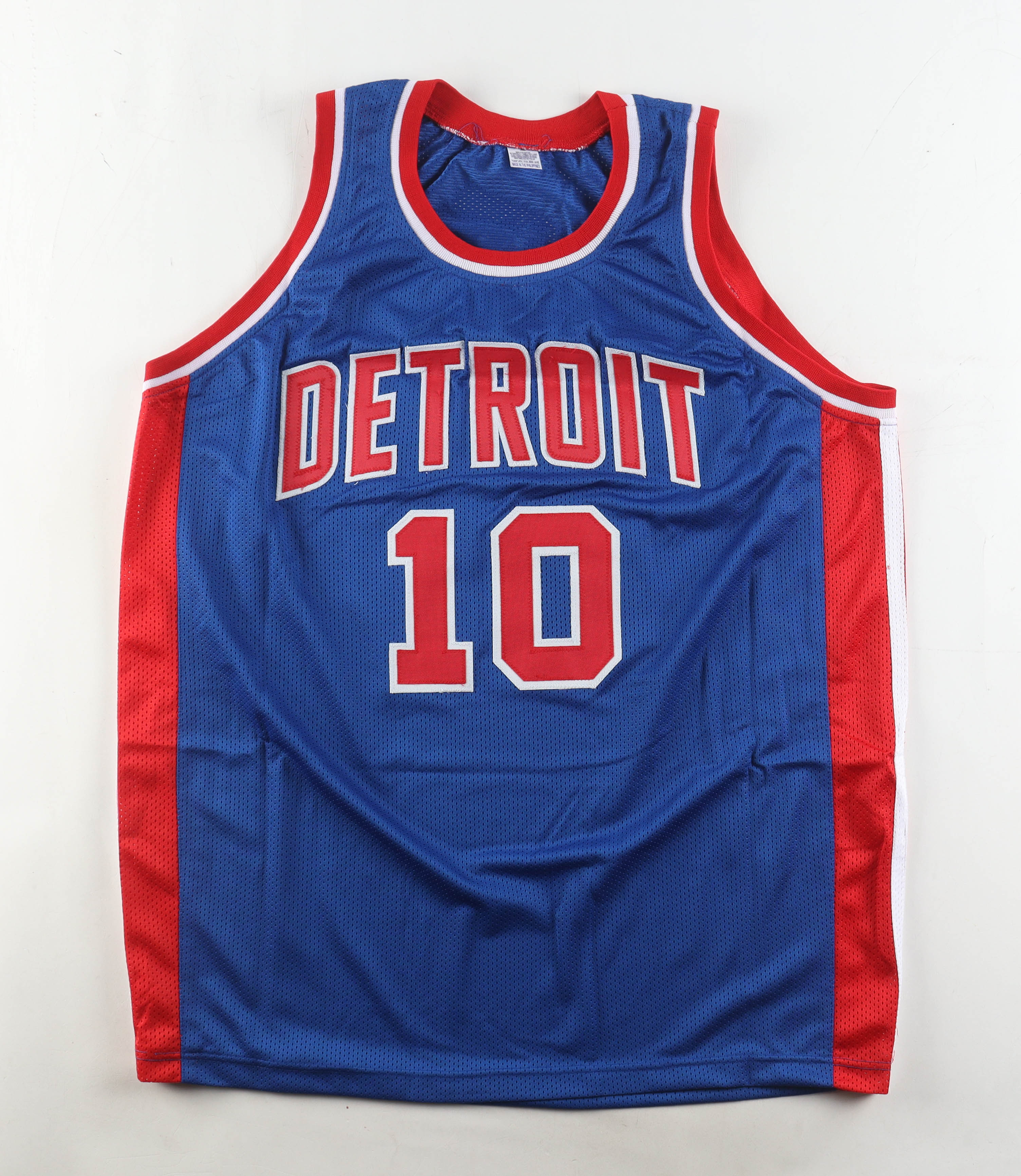 Custom jersey with everything sewn on, size XL. Hand-signed by Dennis Rodman (Detroit Pistons, HOF).