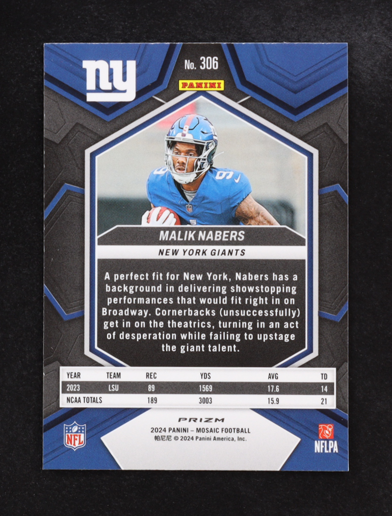 Malik Nabers 2024 Mosaic Camo Pink #306 RC