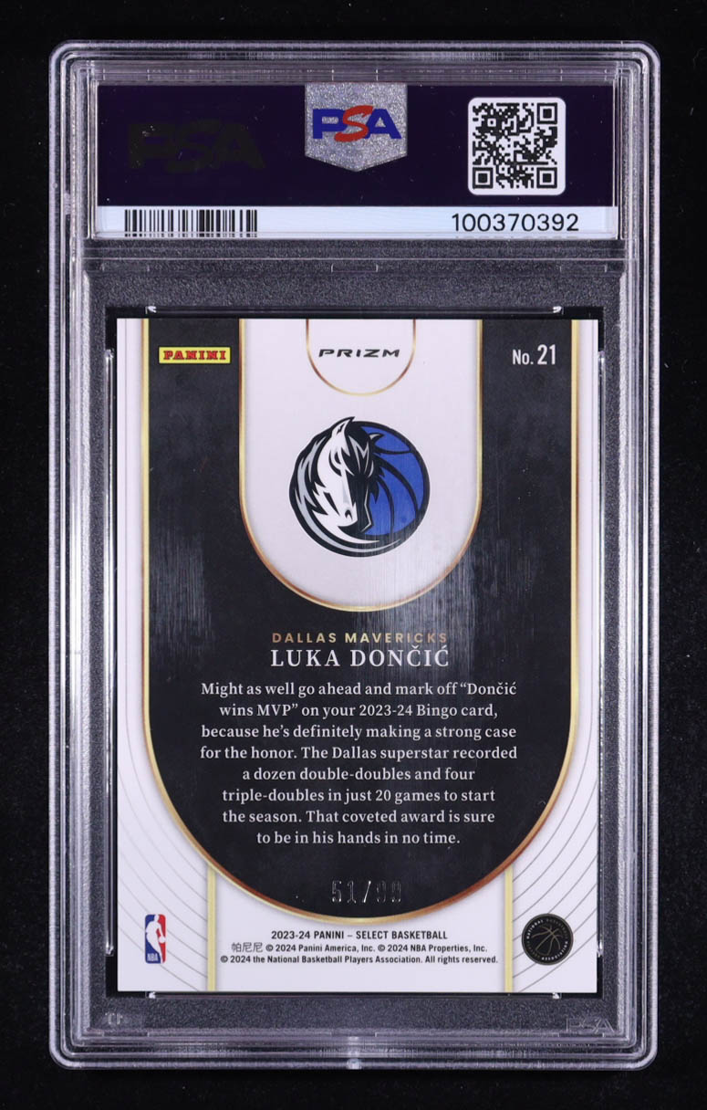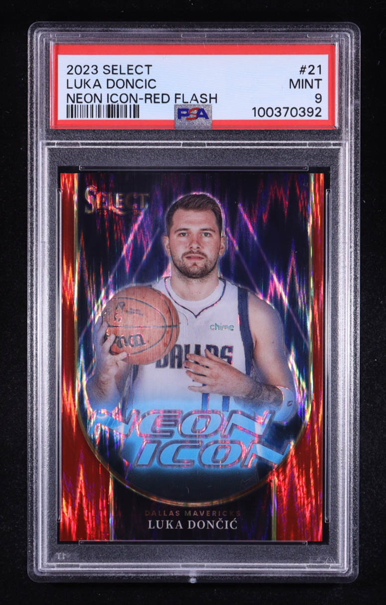Luka Doncic 2023-24 Select Neon Icon Red Flash Prizms #21 #51/99 (PSA 9)