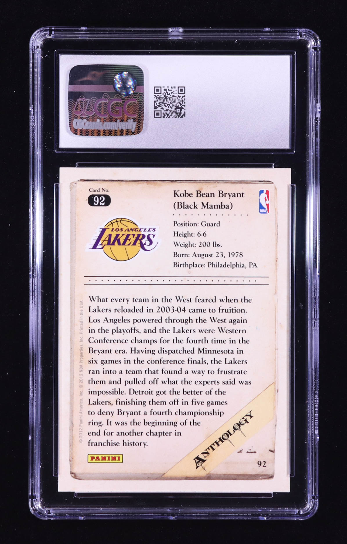 Kobe Bryant 2012-13 Panini Kobe Anthology #92 (CGC 10)