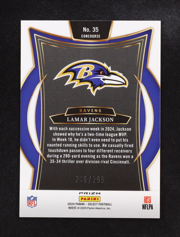 Lamar Jackson 2024 Select Panini Prizm Tri Color Concourse #35 #246/299