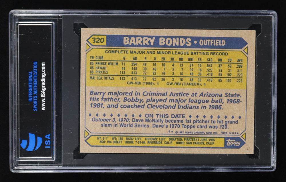 Barry Bonds 1987 Topps #320 RC (ISA 10)