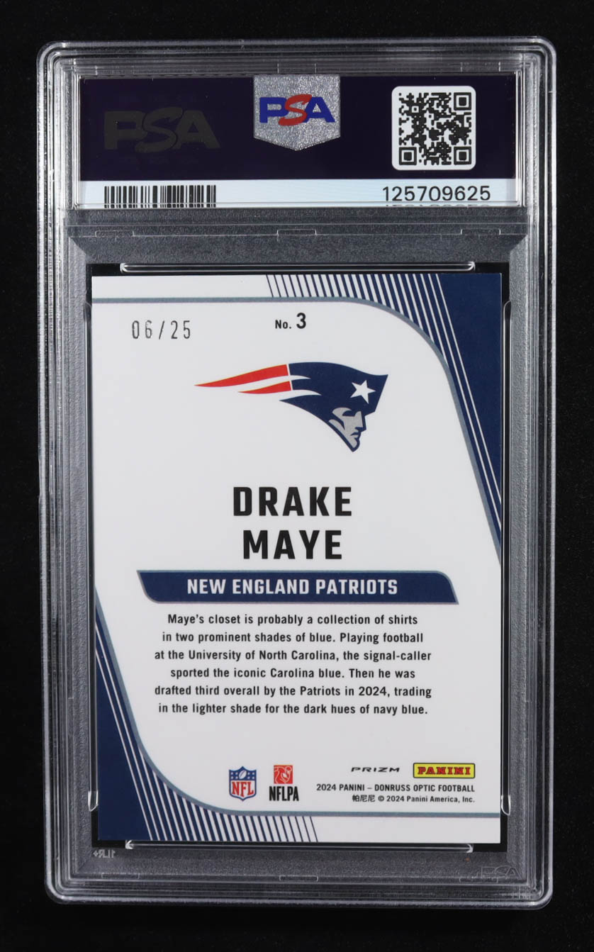 Drake Maye 2024 Donruss Optic Rookie Primary Colors Purple Stars #3 RC #6/25 (PSA 9)