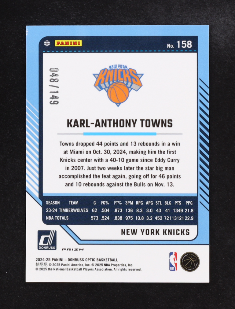 Karl-Anthony Towns 2024-25 Panini Donruss Optic Prizm Red Seismic #158 #048/149