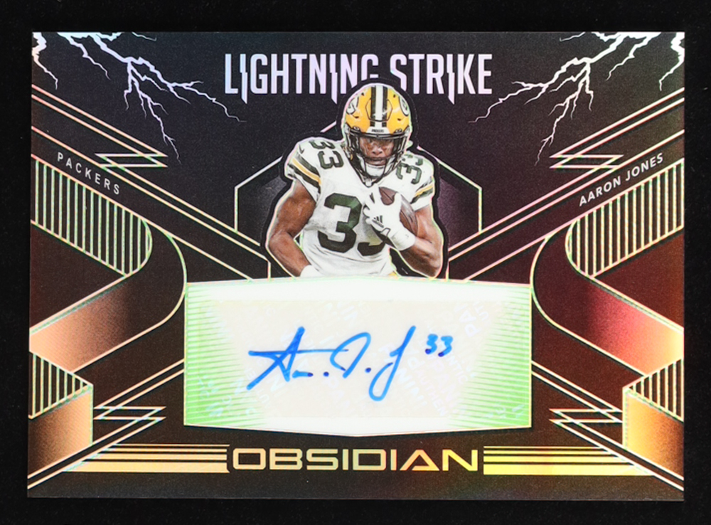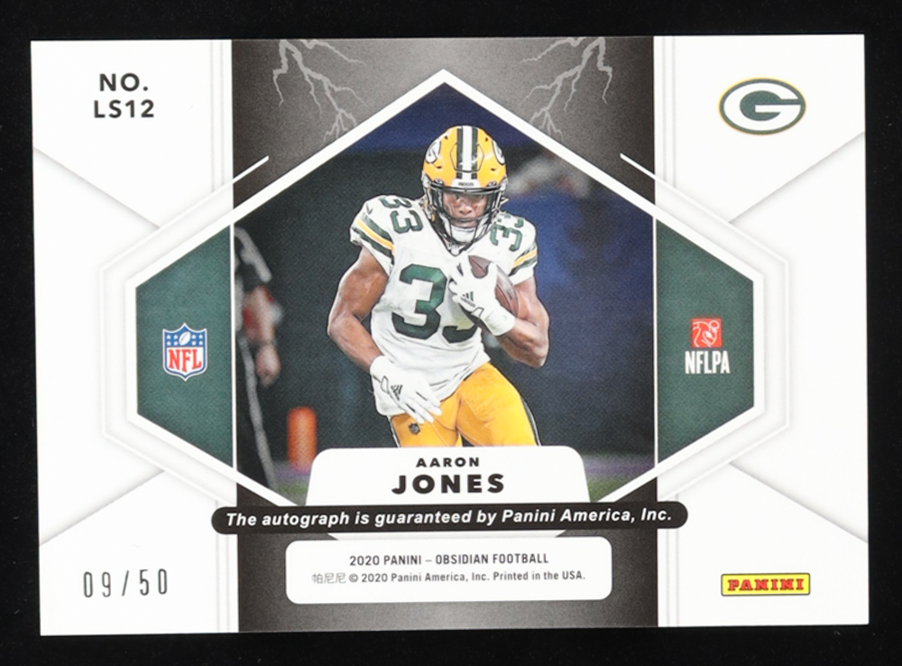 Aaron Jones 2020 Panini Obsidian Lightning Strike Autographs Electric Etch Green #12 #9/50