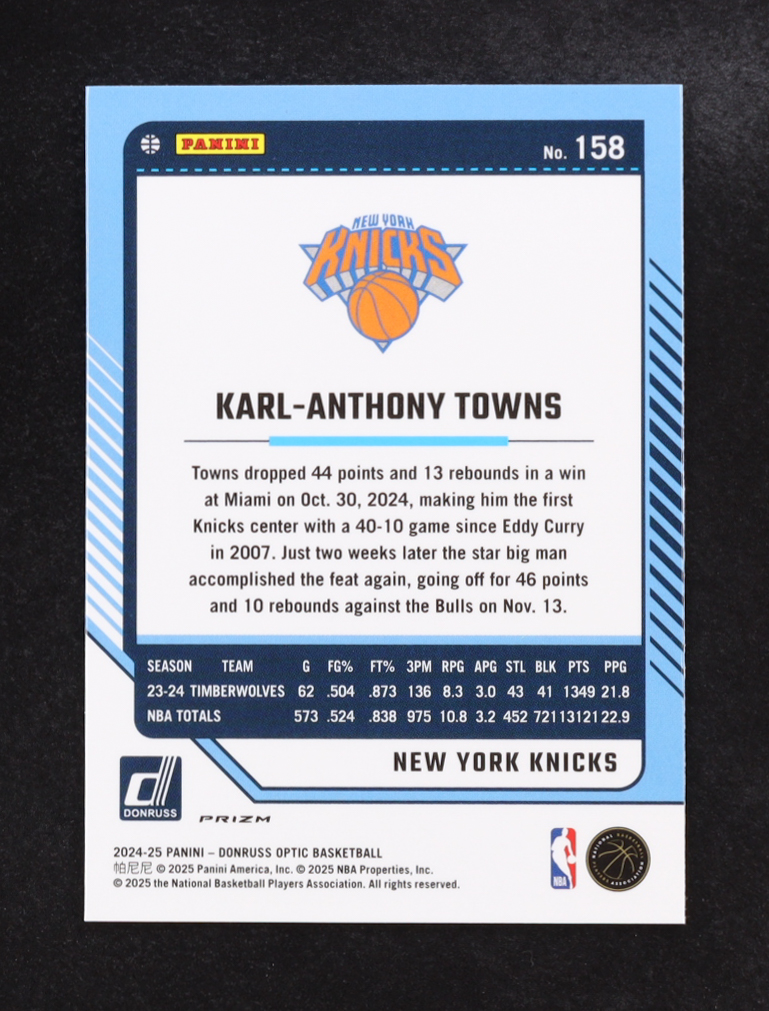 Karl-Anthony Towns 2024-25 Panini Donruss Optic Prizm Purple #158
