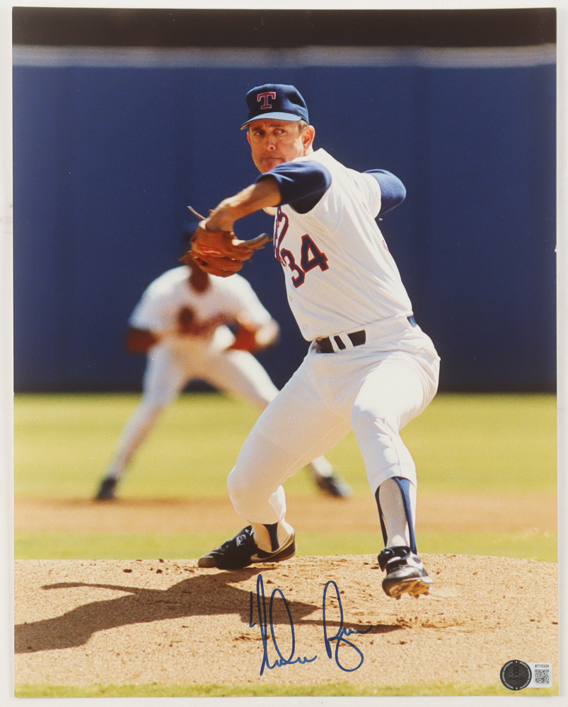 Photo measures 11" x 14" in size and has been hand-signed by Nolan Ryan (Texas Rangers, HOF).