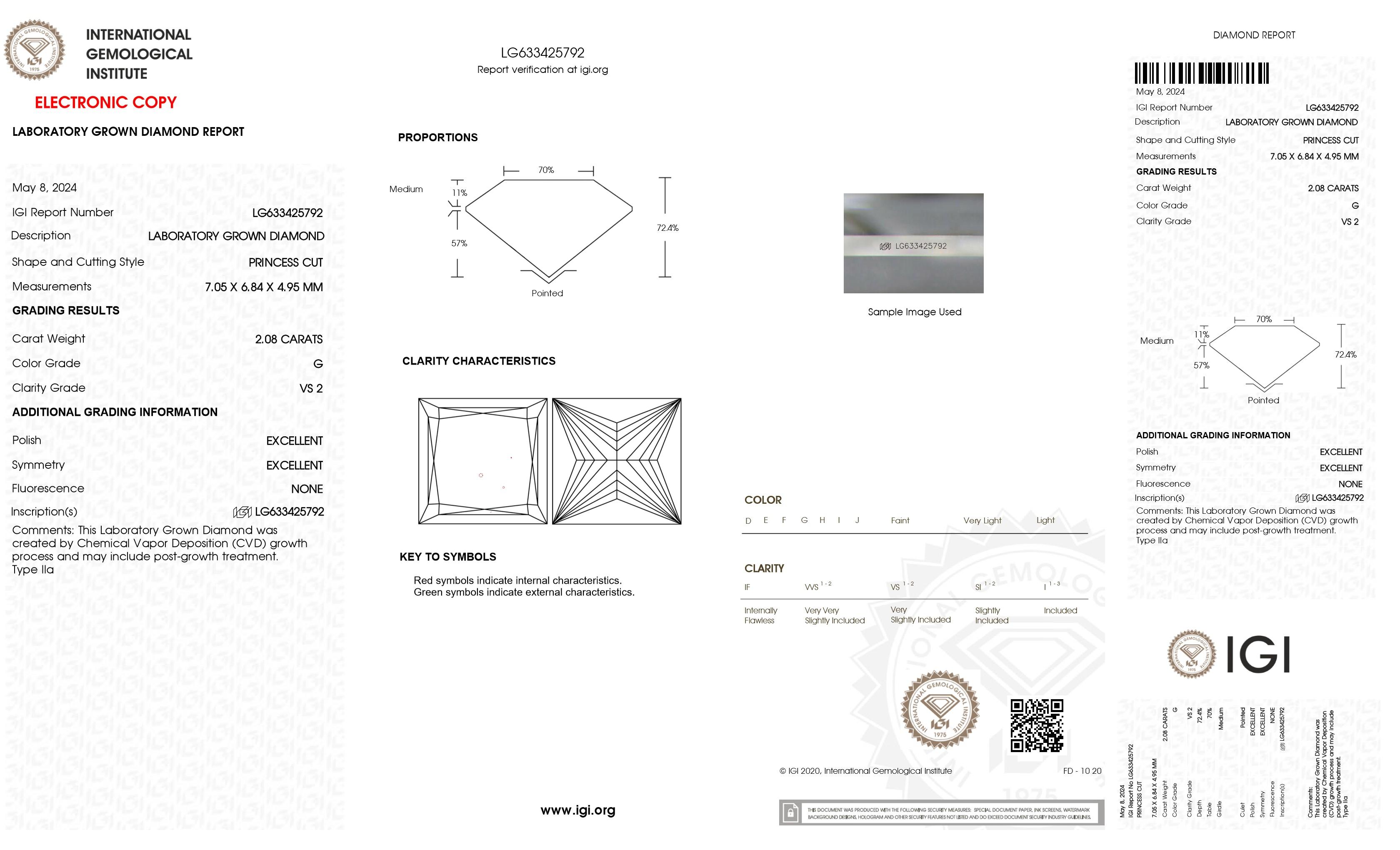 2.08 Carats Lab Grown Diamond Loose G, VS2 | Estimated Retail Value: $3,100 (UGL & IGI)