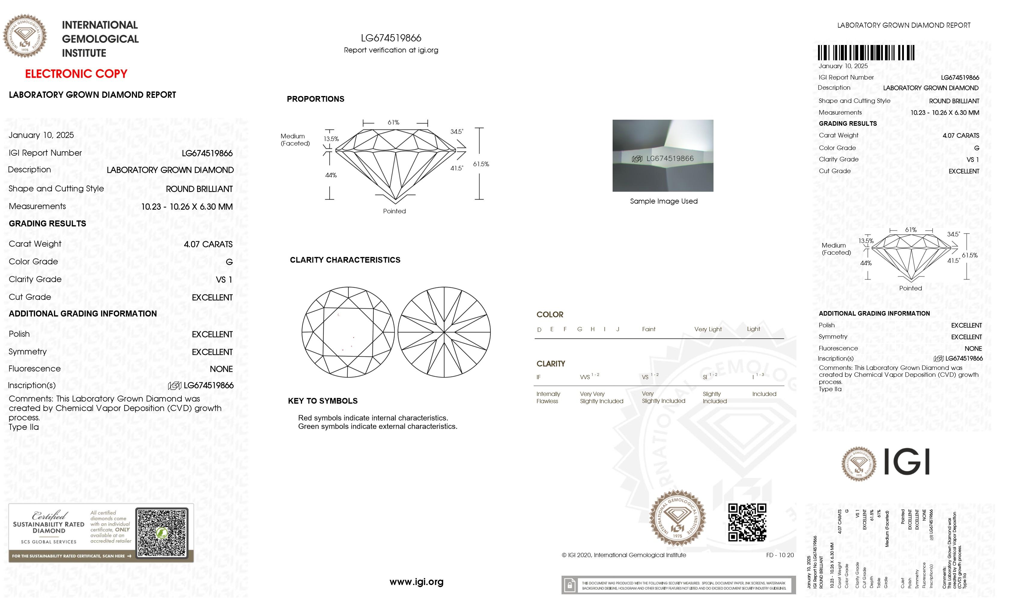 The diamond features a precision laser inscription of the IGI certificate number, ensuring authenticity and traceability.