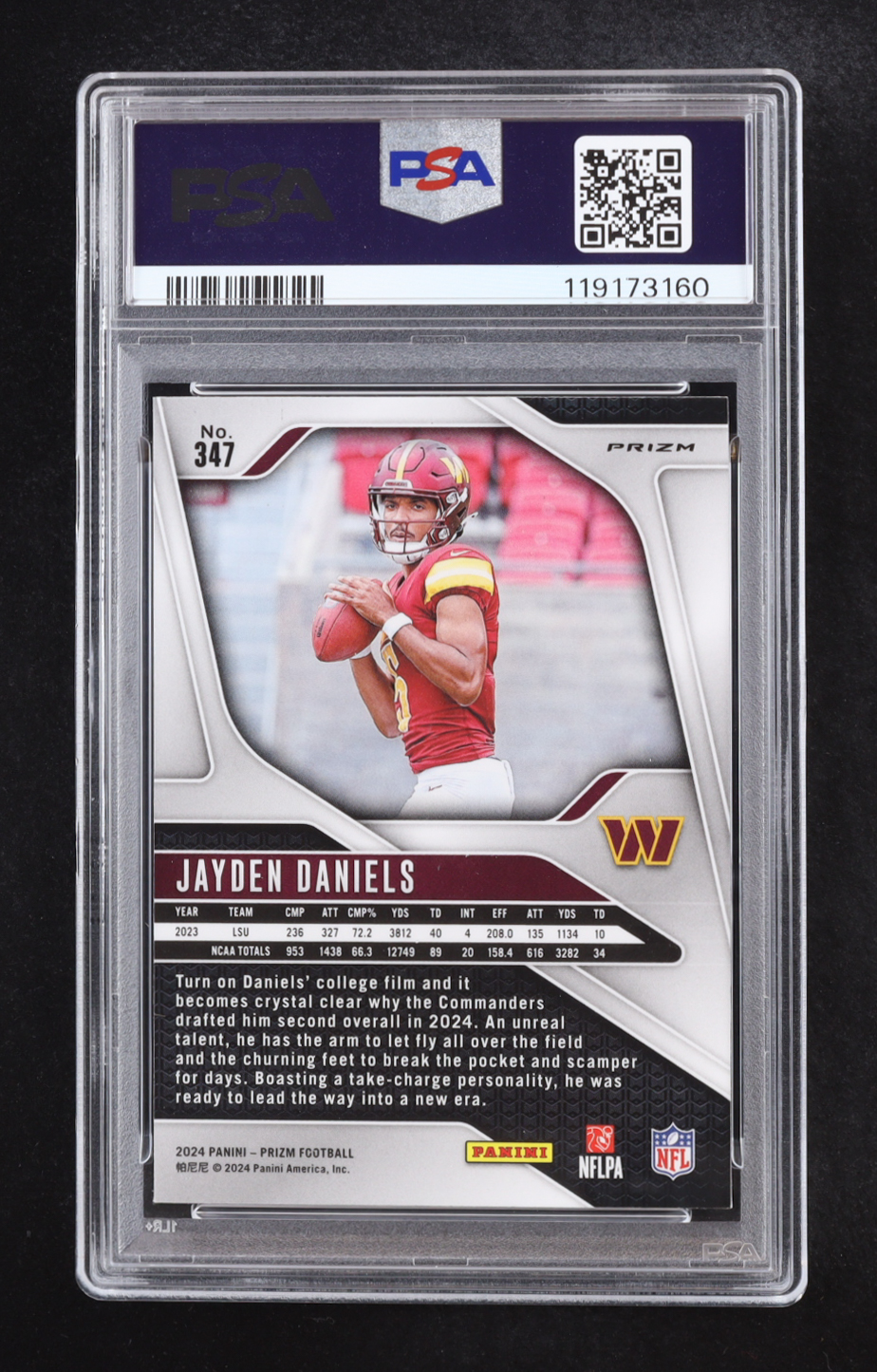 Jayden Daniels 2024 Panini Prizm Red White Blue Prizms #347 RC (PSA 9)