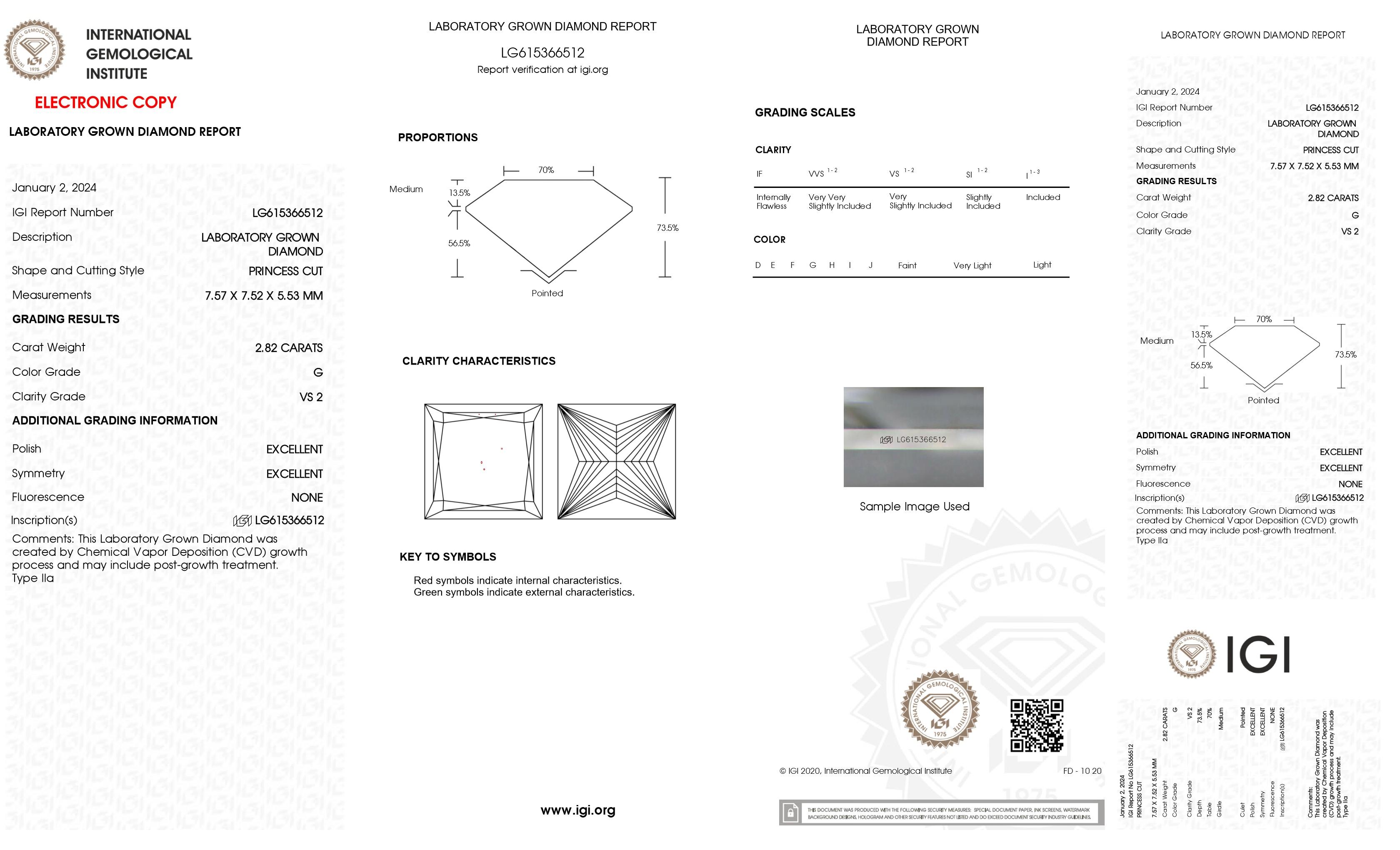 The diamonds feature precision laser inscriptions with the IGI certificate numbers, ensuring authenticity and traceability.