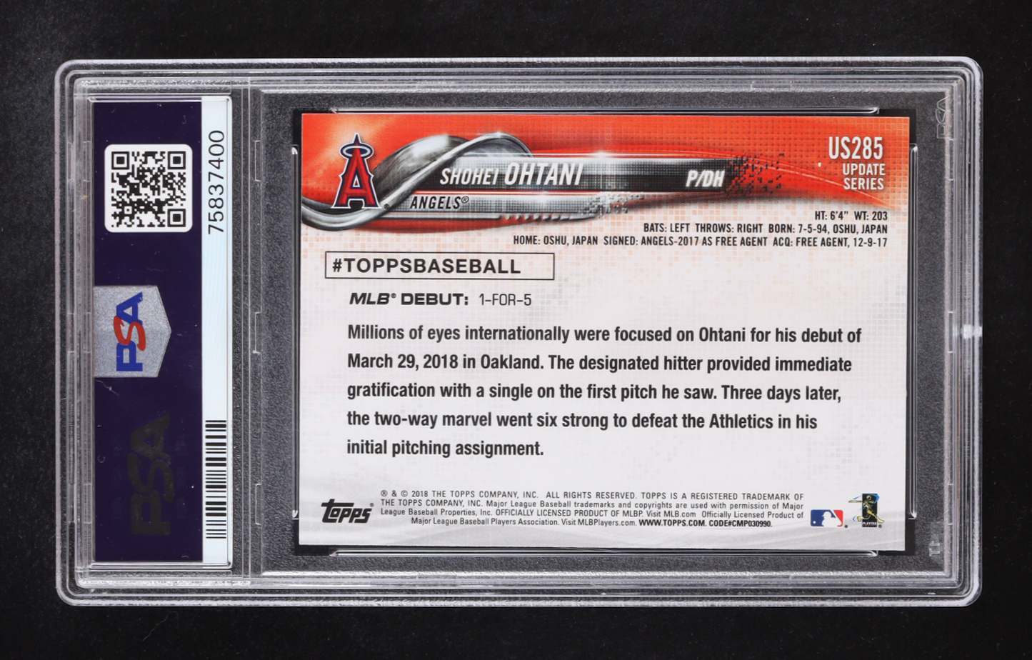 Shohei Ohtani 2018 Topps Update #US285 (PSA 10)