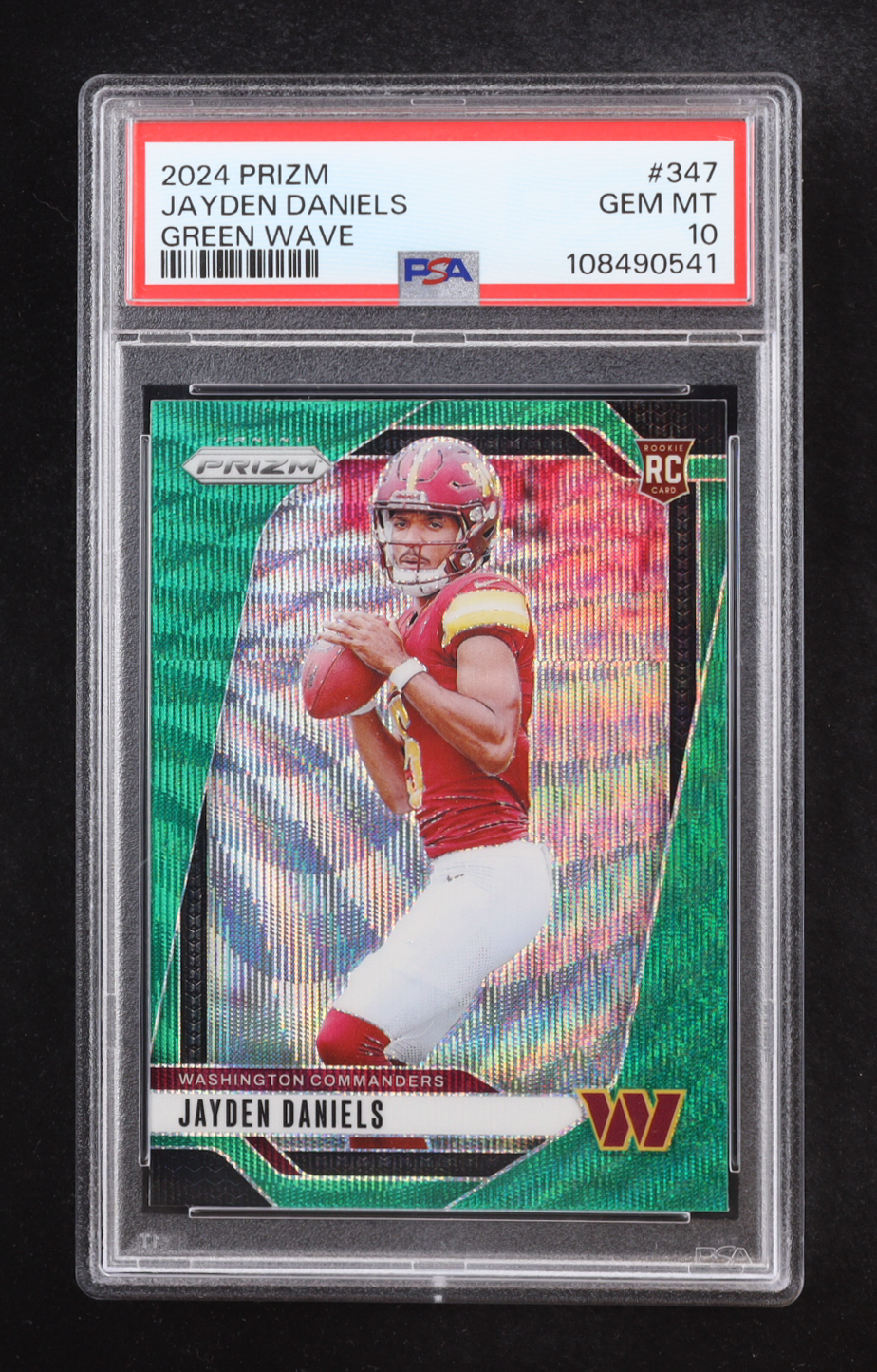 Jayden Daniels 2024 Panini Prizm Green Wave #347 RC (PSA 10)