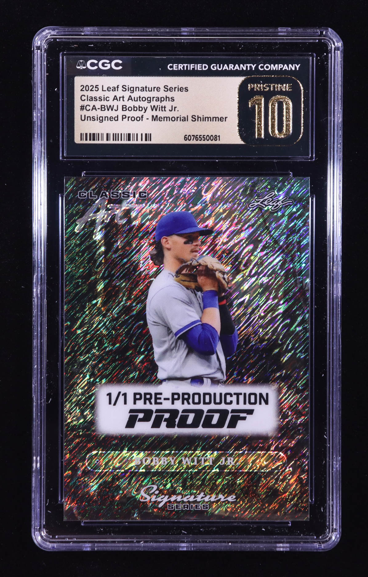 Bobby Witt Jr. 2025 Leaf Classic Art Signature Series Shimmer Memorial Pre-Production Proof #NNO #1/1 (CGC 10 | Pristine Black Label)
