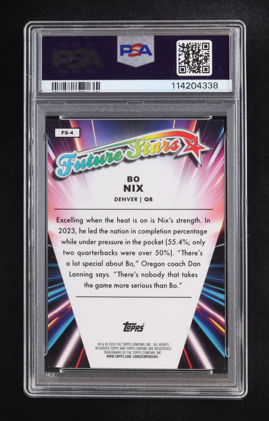 Bo Nix 2024 Topps Chrome Future Stars Blue Refractor #FS4 RC #64/150 (PSA 10)