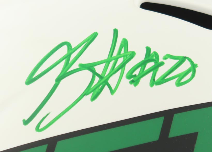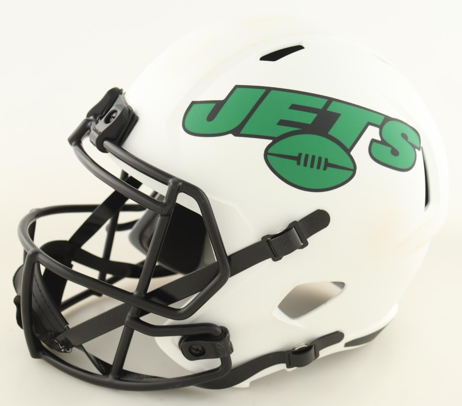 Riddell New York Jets Full-Size Lunar Eclipse Alternate Speed Replica Helmet. Hand-signed by Breece Hall. Please note, there are stains throughout the helmet.