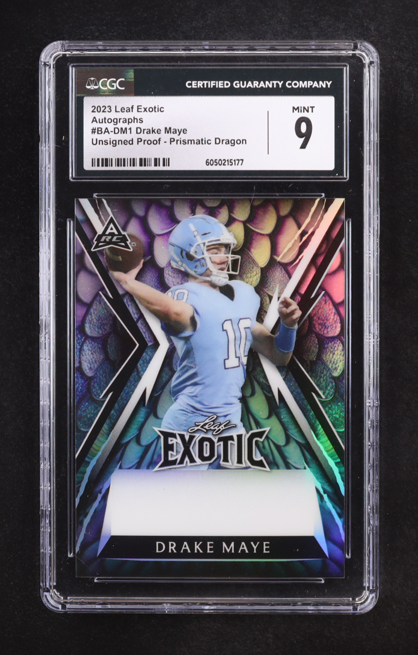 Drake Maye 2023 Leaf Exotic Prismatic Dragon Unsigned Pre-Production Proof #BADM1 RC #1/1 (CGC 9)