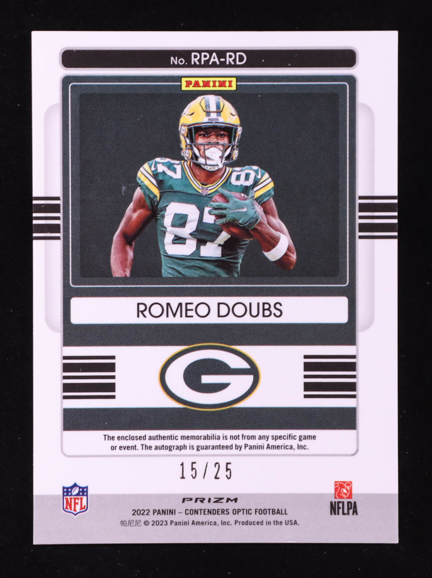 Romeo Doubs 2022 Panini Contenders Optic Rookie Patch Autographs Orange #23 #15/25 RC