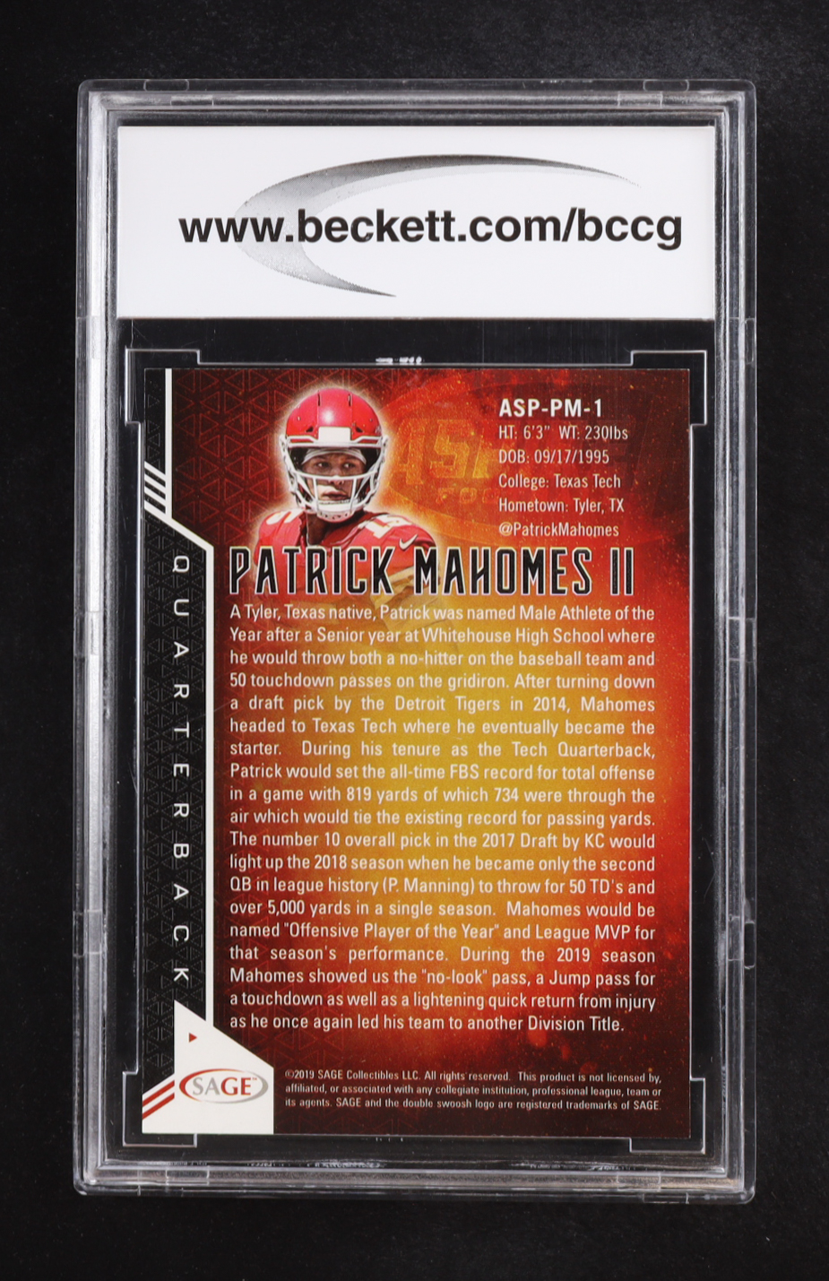 Patrick Mahomes II 2019 SAGE Aspire #ASPPM1 (BCCG 10)