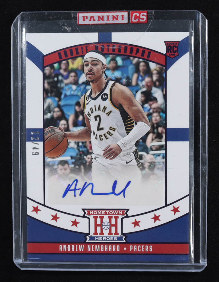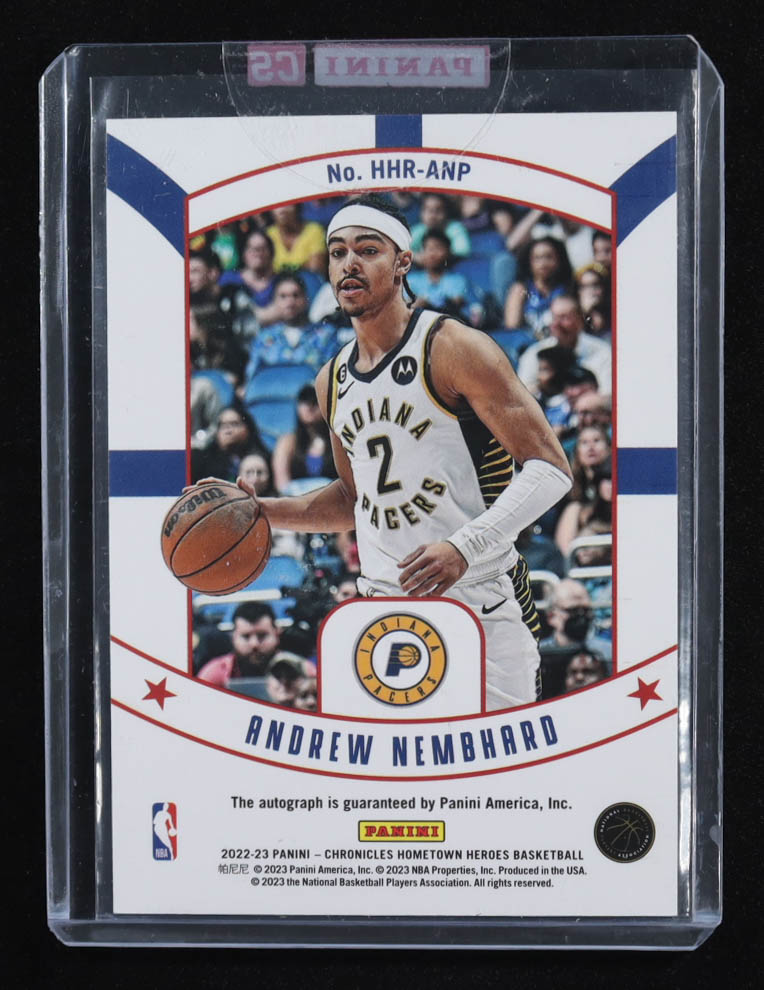 Andrew Nembhard 2022-23 Panini Chronicles Hometown Heroes Rookie Autographs Purple #20 #12/49 RC