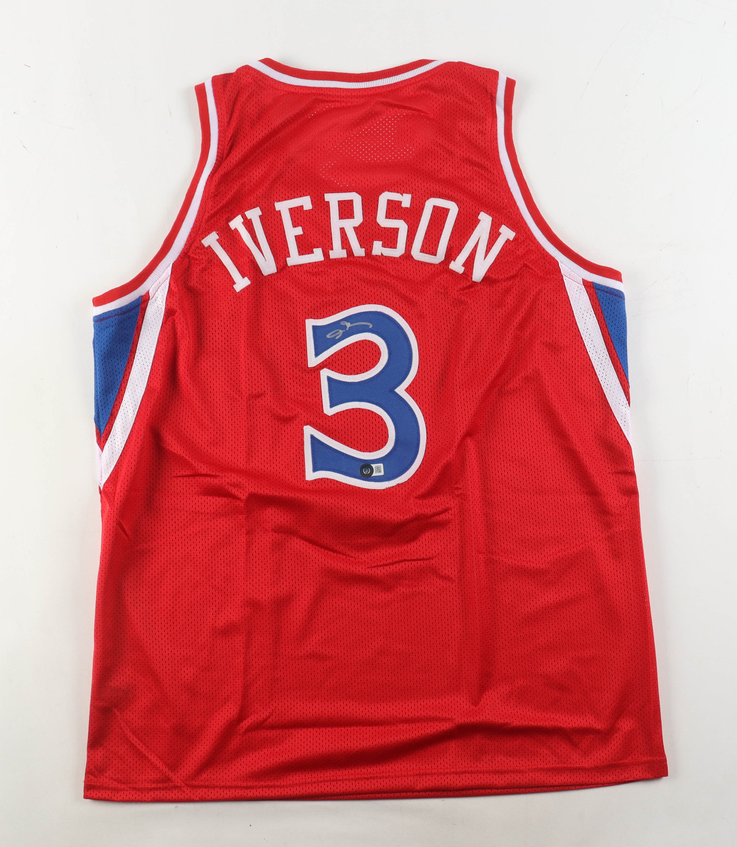 Custom jersey with everything sewn on, size XL. Hand-signed by Allen Iverson (HOF).