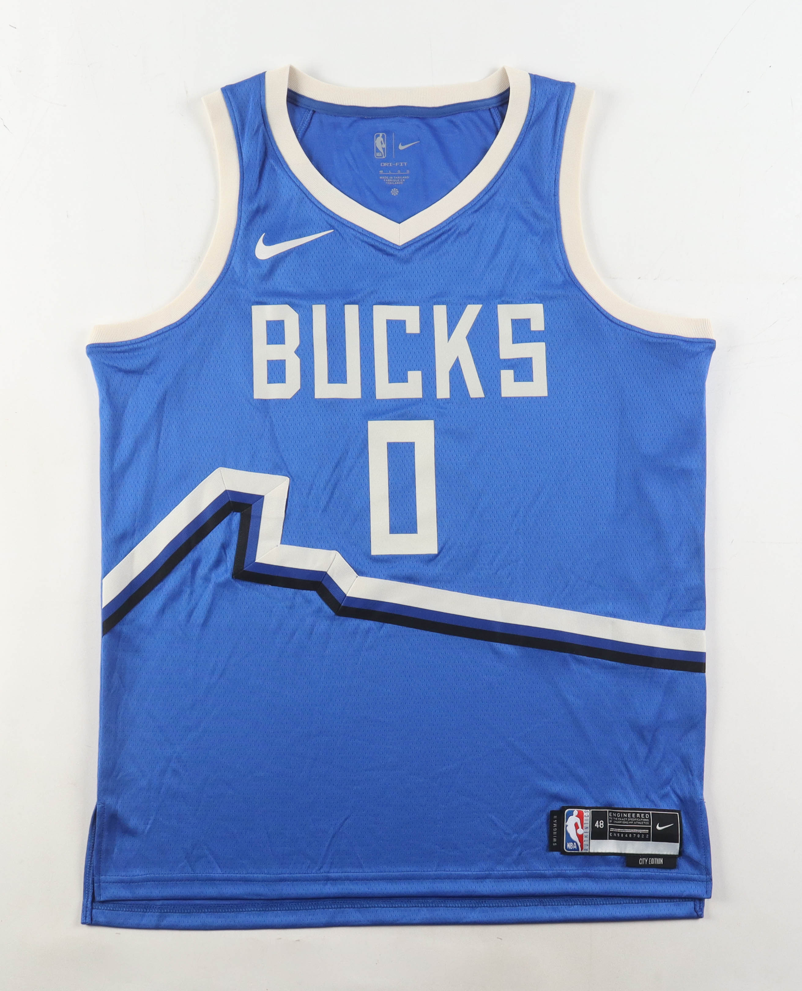 Nike jersey with everything pressed on, size 48. Hand-signed by Damian Lillard (Milwaukee Bucks).