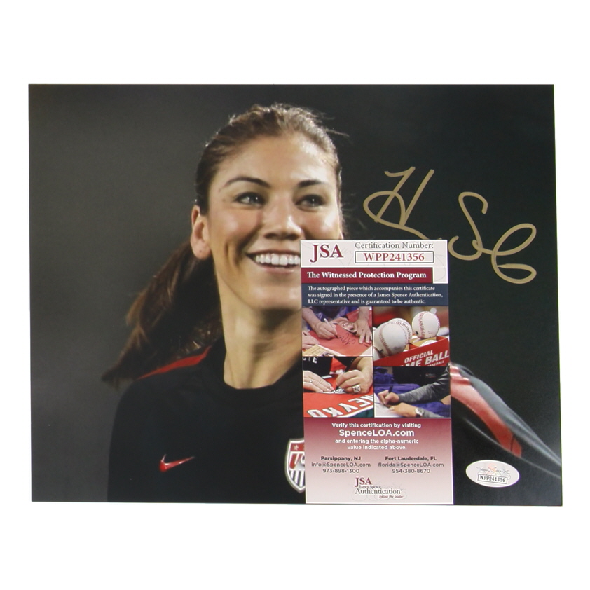 Photo measures 8" x 10" in size and has been hand-signed by Hope Solo (HOF).