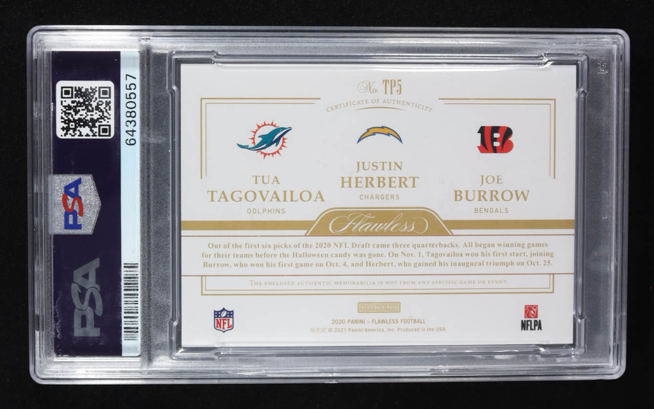 Tua Tagovailoa/Justin Herbert/Joe Burrow 2020 Flawless Triple Patches #TP5 RC #19/25 (PSA 9)