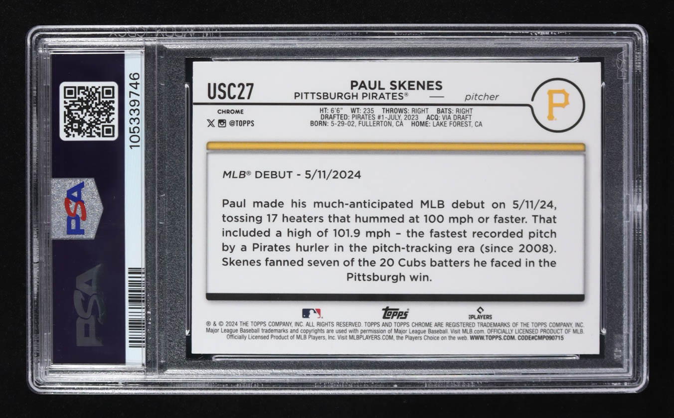 Paul Skenes 2024 Topps Chrome UPD Magenta/Purple Lava Lamp #USC27 RC #231/299 (PSA 10)