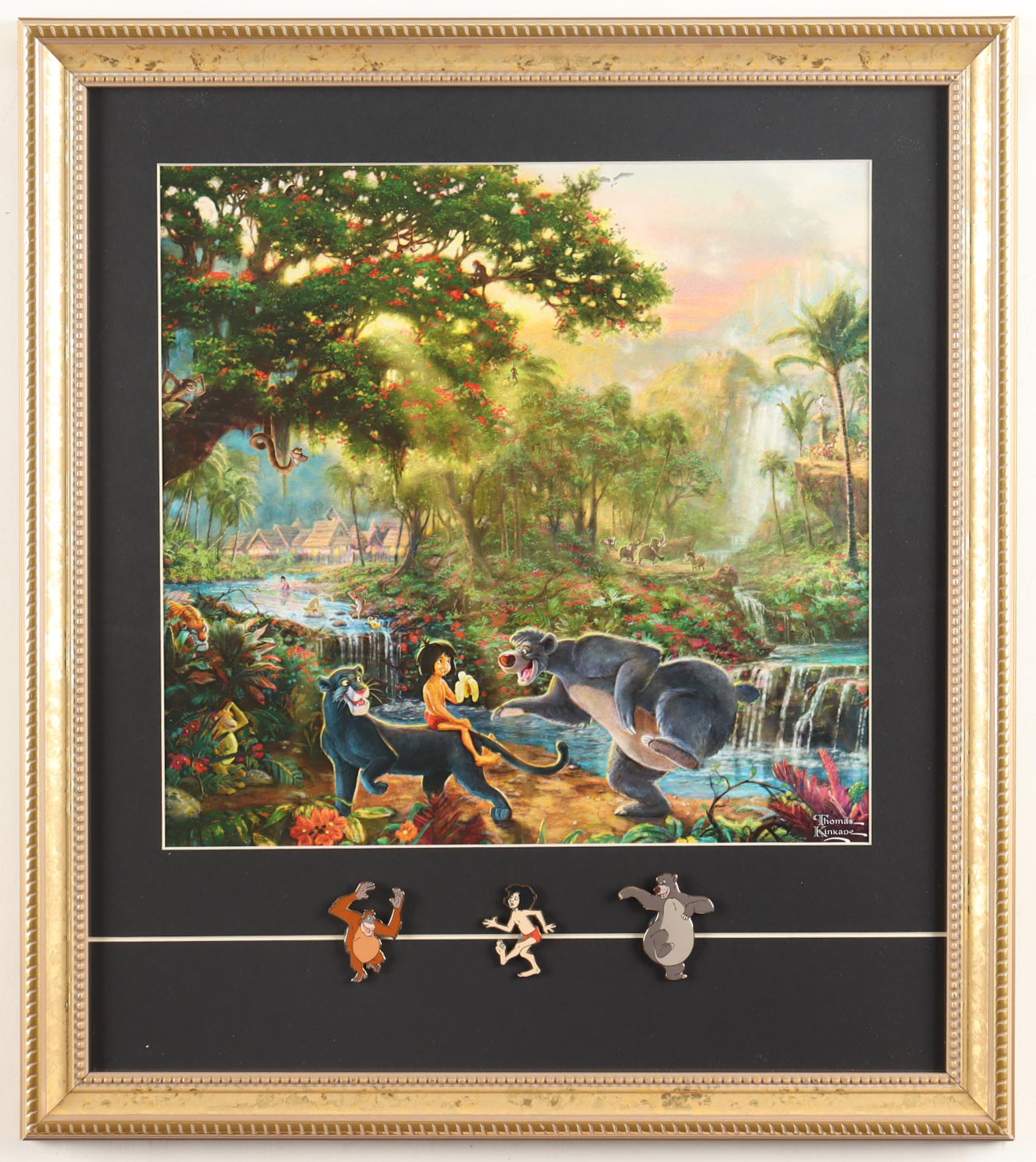 Thomas Kinkade Walt Disney's "Jungle Book" Custom Framed Print Display with (3) Character Pins