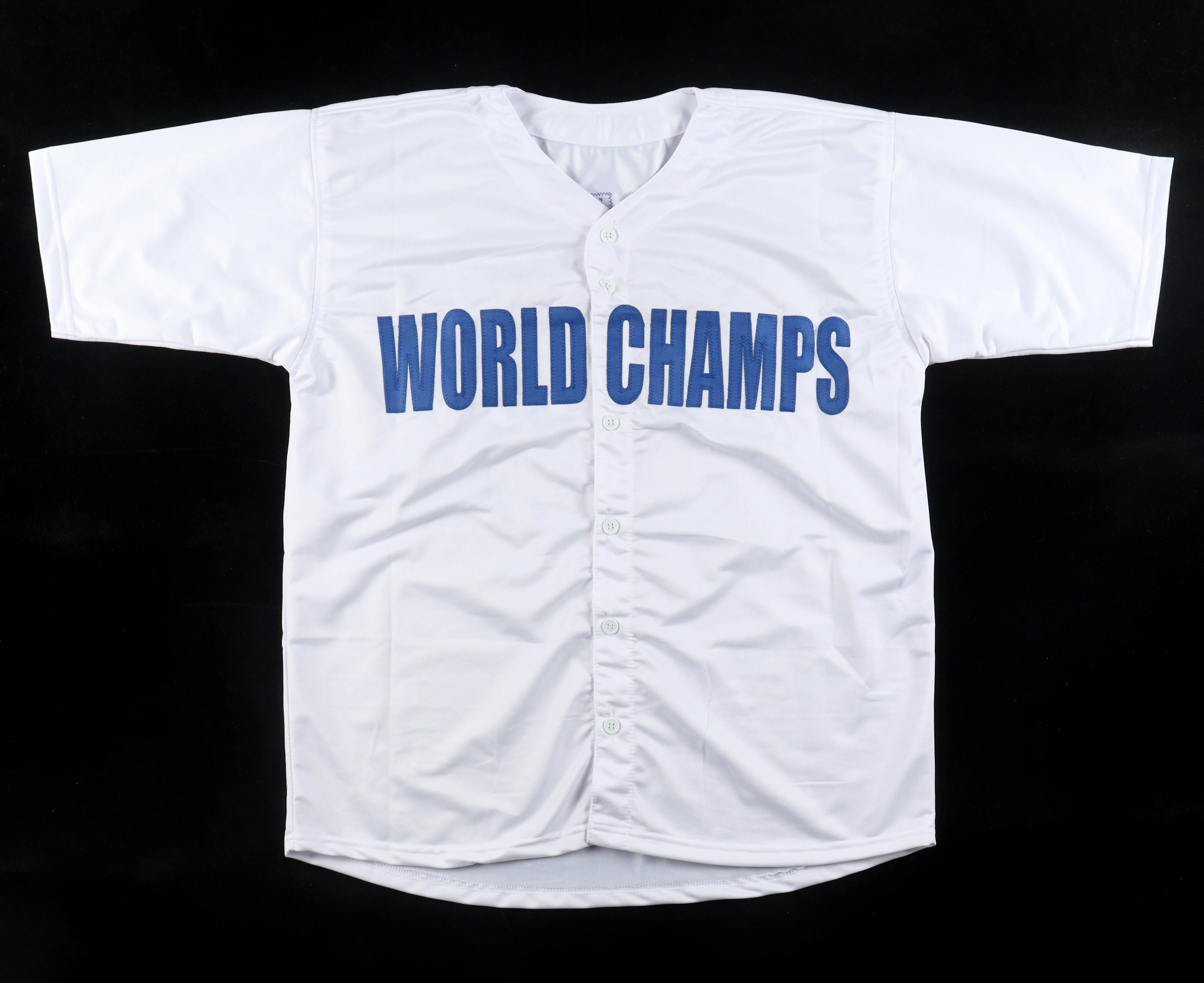 Custom jersey. Everything sewn on, size XL. Has been hand-signed and inscribed by Dave Roberts.